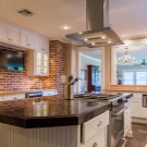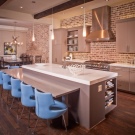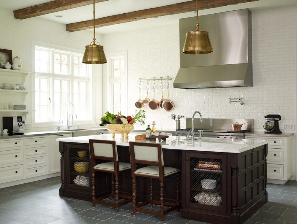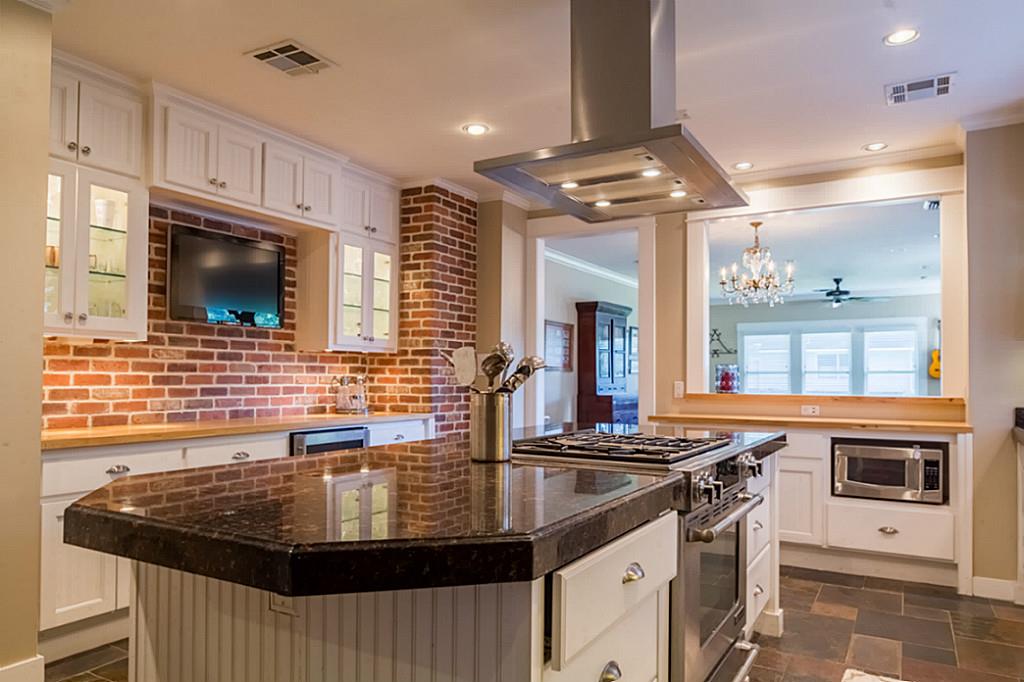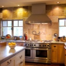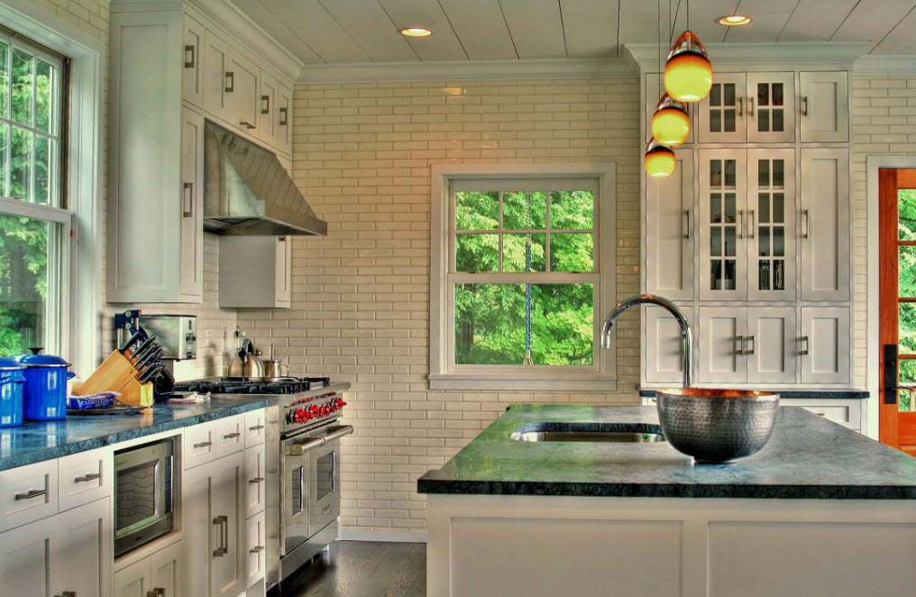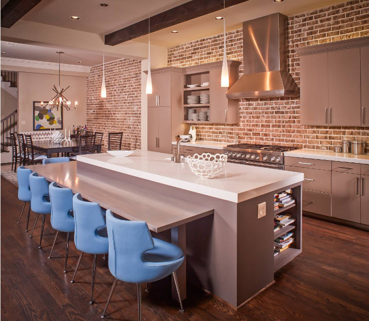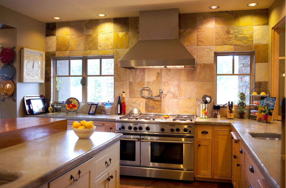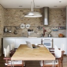 Die Option, Feinsteinzeug oder Stein bei der Dekoration von Küchenwänden zu verwenden, bringt natürlich erhebliche Kosten mit sich, aber sie kann die Küche in einen luxuriösen Raum verwandeln, der einer mittelalterlichen Burg und nicht einer modernen Wohnung innewohnt.