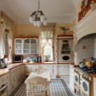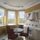 Die Küche mit einem Erker, der in Neubauten zu finden ist, hat meist auch eine geringe Größe.Durch das ungewöhnlich platzierte Fenster ist das Design immer sehr wirkungsvoll, oft im Stil von "Provence" oder "Art Deco".