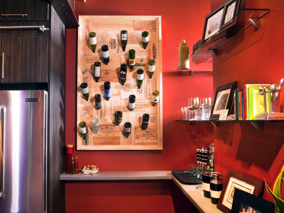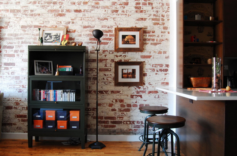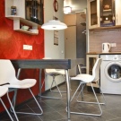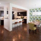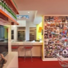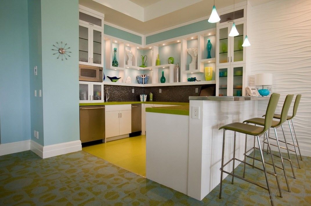 Alternativ kann eine kleine Bar an der Grenze von Küche und Wohnzimmer platziert werden, so dass sie den Durchgang nicht stört, sondern einen einzelnen Raum optisch trennt.