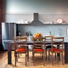 Wenn es eine Möglichkeit gibt, eine der Wände mit Hilfe eines Spiegels zu dekorieren, dann müssen Sie dies verwenden, der Spiegel wird auch visuell das Volumen der Küche erhöhen. Die Küchenschürze oder, wie es manchmal genannt wird, die Wand, kann aus Glas, Fliesen oder Metallfliesen gelegt werden. Oder, um vom hellen skinal ohne Zeichnung zu verwirklichen, wird das Glas die notwendige Leichtigkeit drinnen schaffen.