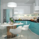 Dank der Renovierung einer kleinen Küche in der Wohnung - "Chruschtschow" können Sie einen komfortablen Arbeitsbereich der Küche mit einem Wohnzimmer - Esszimmer bekommen.