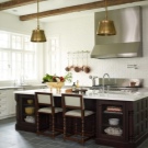 In einer Situation, in der Kochen ein Lieblingshobby der Besitzer ist, verbringen sie jeden Tag eine lange Zeit in ihrer Küche. In diesem Fall können Sie Töpfe und Pfannen nicht in den Nischen von Küchenschränken verstecken, sondern als dekorative Akzente verwenden.