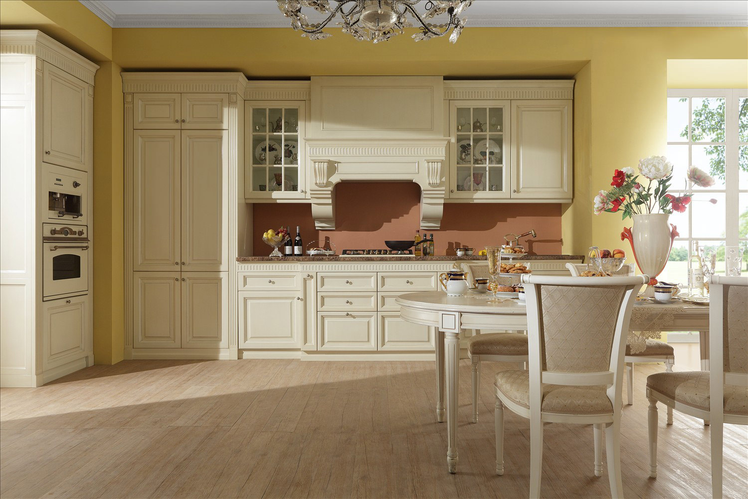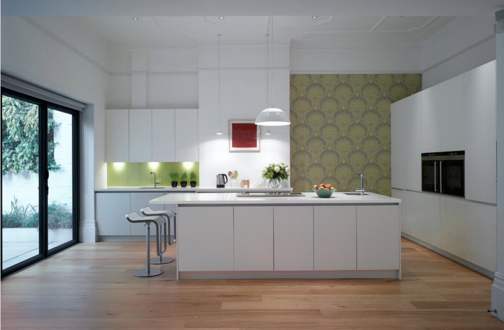 Weiße Farbe es fühlt sich frisch und sauber an, die weiße Küche ist in der Lage, die Person, die aus dem Schlaf kommt, zu wecken.