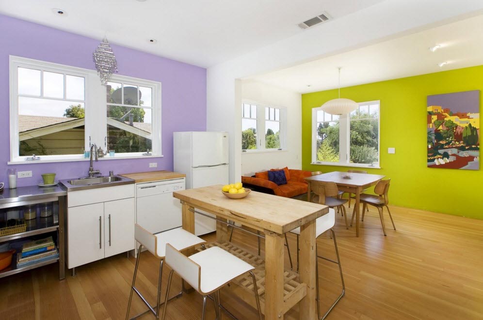 Abbruch der Wand kann die ehemalige Küche und Wohnzimmer in ein Studio verwandeln, wird es eine bequeme Option für beide Ein-Zimmer-und Ein-Zimmer-Wohnungen - "Chruschtschow". Um dies zu tun, können Sie das Design der Wände einer einzelnen texturierten Beschichtung, zum Beispiel Gips, aber in verschiedenen Farben malen, eine unsichtbare Randzonen gezeichnet haben.Oder lassen Sie einen Teil der Mauer intakt, nachdem Sie einen schönen Bogen darin geschmückt haben.