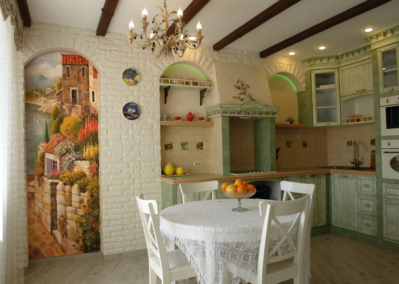 Die Wände in der Küche werden normalerweise zum Aufhängen von Schränken oder Küchengeräten verwendet, aber das bedeutet nicht, dass sie nur eine nützliche Funktion erfüllen sollten. Die Küche ist besser als jeder andere Raum im Haus, ermöglicht es Ihnen, mit Stilen und Materialien in der Dekoration zu experimentieren, gibt Ihnen die Möglichkeit, ein interessantes Design zu wählen und kühne Wünsche zu machen.