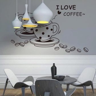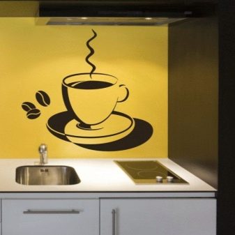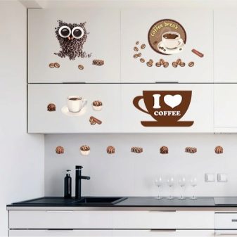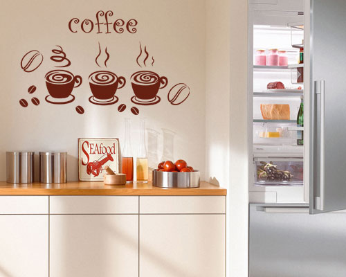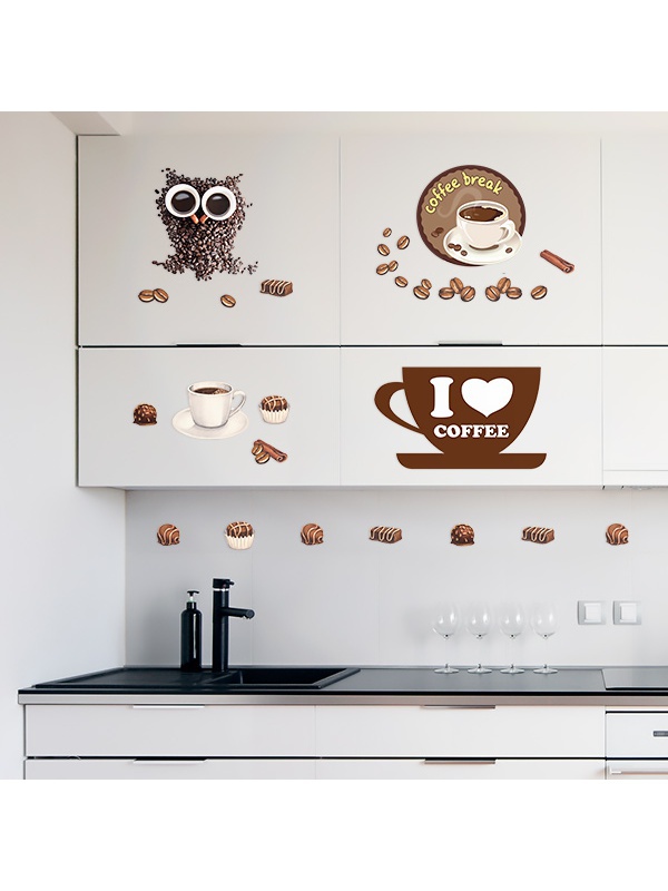 Übrigens, Küchenaufkleber sind nicht unbedingt eine schwarze Silhouette. Aufkleber können vollfarbig sein. Brown-Aufkleber auf Kaffee sehen sehr warm aus: