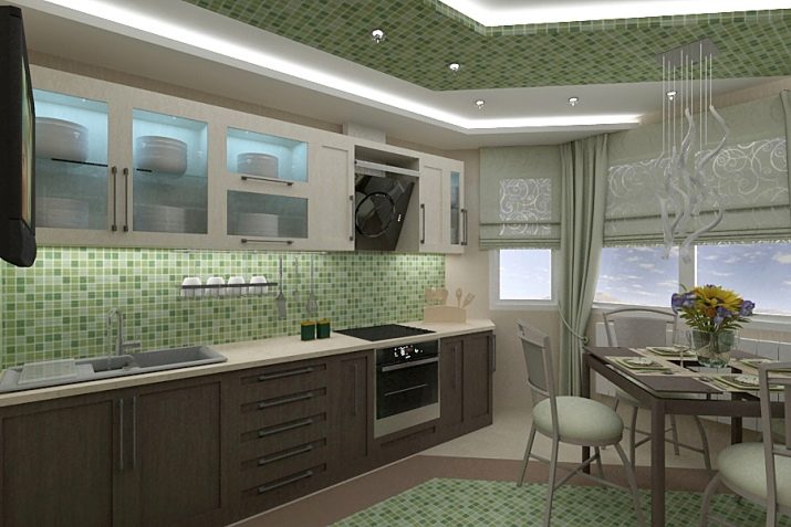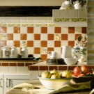 Mit Hilfe von Keramikfliesen können Sie eine Schürze oder einen Teil der Wand neben dem Esstisch machen. Designer empfehlen nicht, mit diesem Material alle Wände in der Küche zu beenden, da es schwer aussieht und den Raum schmaler macht.