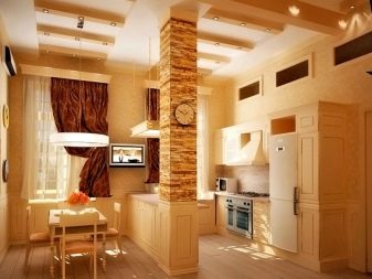 Eine große Vielfalt an Texturen, Farben ermöglicht es Ihnen, einen interessanten und ungewöhnlichen Raum zu schaffen. Angesichts der Tatsache, dass die Küche in zwei Hauptbereiche unterteilt ist - Arbeiten und Essen durchgeführt wird und die Reparatur von Wänden. Oberflächen, die die Hauptlast tragen, können aus nachhaltigen Materialien hergestellt werden und für den Essbereich ein dekoratives Finish wählen.