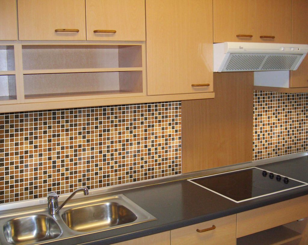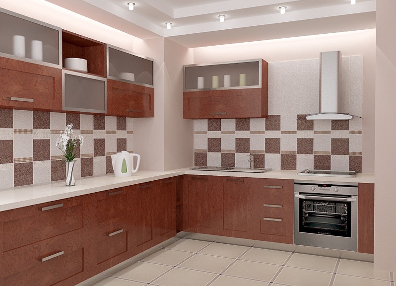 Fliesen (Keramikfliesen). Der Arbeitsbereich in der Küche kann mit nachhaltigen Keramikfliesen oder Fliesen versehen werden. Dieses Material ist langlebig und langlebig. Er ist nicht von hohen Temperaturen betroffen, die Fliese ist perfekt gereinigt, und eine große Auswahl an Farbe und Design trägt zu seinen Vorteilen im Sparschwein bei. Fliese kann glatt, matt, Textur, glänzend sein.
