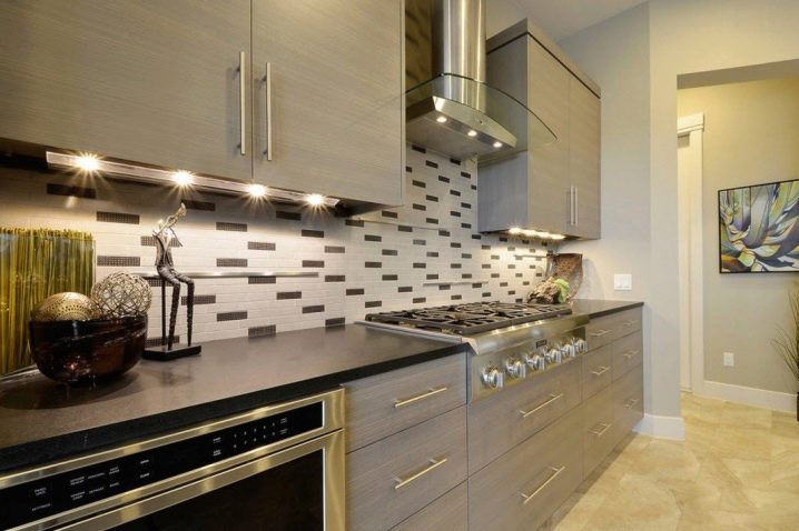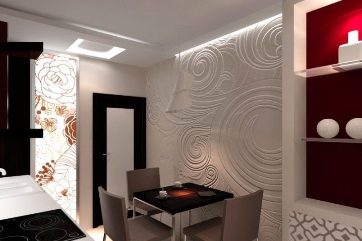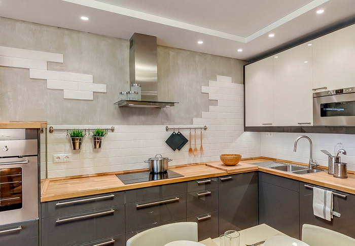 Eine große Auswahl an Oberflächenmaterialien ermöglicht es Ihnen, interessante Innenräume zu schaffen. Schöne und originale Texturen sehen luxuriös an der Wand der Küche aus. Ein großes Plus an modernen Materialien für die Dekoration - die Relevanz und Haltbarkeit.