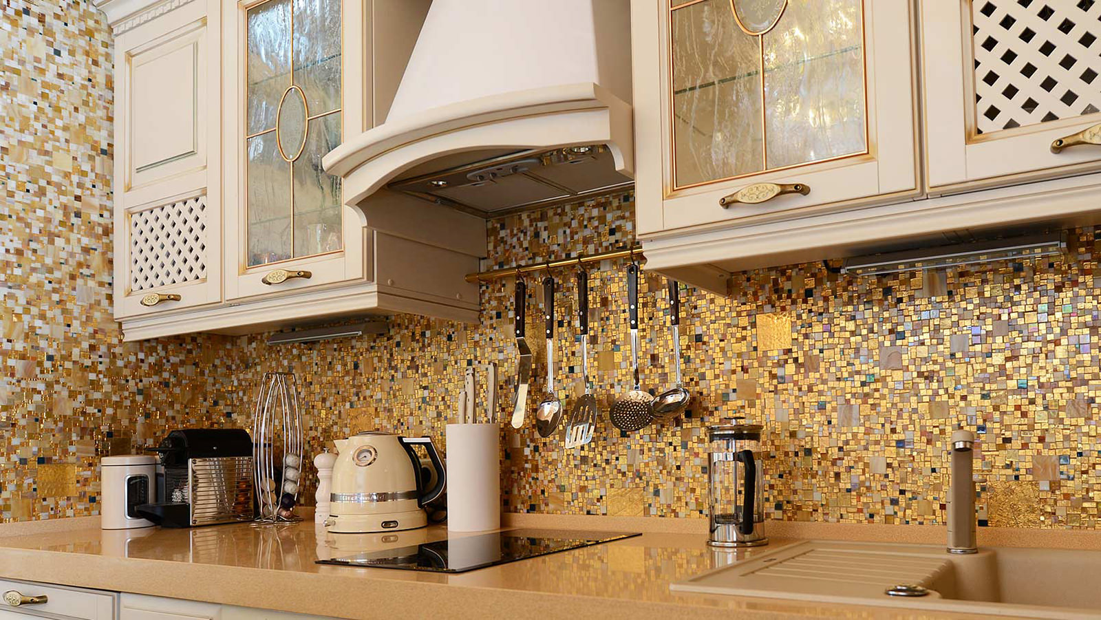 Mosaik ist teurer als Keramikfliesen. Dank der ästhetischen Erscheinung,Dieses Material kann nicht nur den Arbeitsbereich, sondern auch den Essbereich vollenden. Um eine Designidee zu verkörpern, braucht es Geduld und Zeit. Plus Mosaik - es ist leicht zu reinigen und dient für eine lange Zeit.