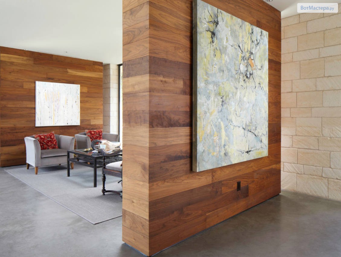 Parkettbretter. Schöne und originelle Entscheidung im Öko-Stil. Parkettbretter werden oft verwendet, um ein skandinavisches Interieur zu schaffen. Boards füllen effektiv den leeren Raum. Das Brett wird nicht nur für Wanddekoration in der Küche, sondern auch im Badezimmer, Wohnzimmer, Schlafzimmer verwendet. Die Diele wäscht gut, verschleißfest, hat ein attraktives Aussehen. Die Vorteile dieses Materials sind Umweltfreundlichkeit und Ästhetik. Ein Holzbrett an der Wand sieht luxuriös aus.