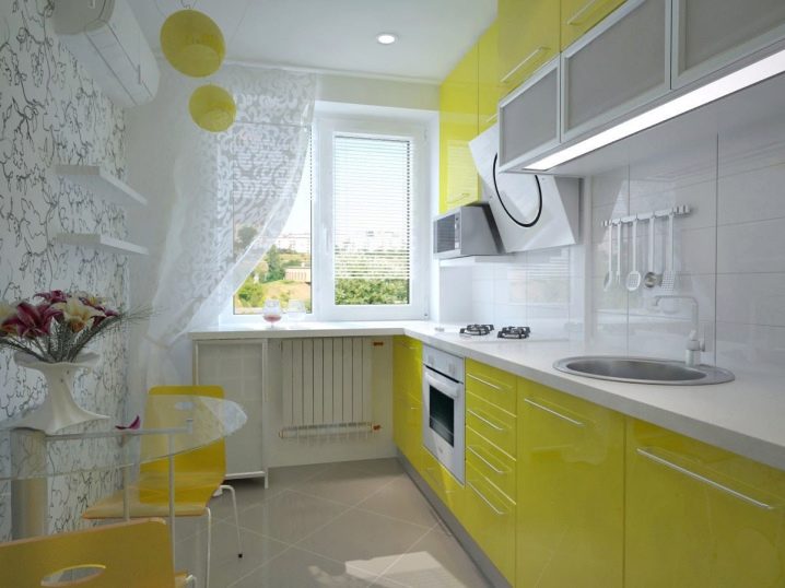 In der Frage der Wanddekoration in der Küche im "Chruschtschow" ist es wichtig, die Farbe ernsthaft zu wählen. Es ist gut, wenn es hell wird, neutrale Farbtöne: grau-blau, beige, weiß, hellgrün, Zitrone. Der Raum sollte so organisiert wie möglich sein. Überladen Sie die Küche nicht mit Details, unnötigen Einrichtungsgegenständen.Wenn möglich, verstecken Sie kleine Geräte in Nischen oder Schränken.