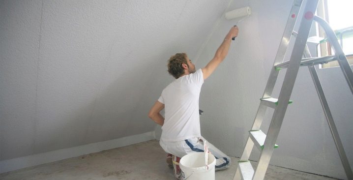 Malen. Farbe für die Endbearbeitung von der üblichen Beschichtung ist unterschiedliche Zusammensetzung, Farbe, Beständigkeit. Bei der Auswahl orientieren Sie sich an Kriterien. Wähle Acrylfarbe. Es trocknet schnell, wäscht gut, bildet einen Schutzfilm an der Wand. Endanstrich beständig gegen Dampf und Feuchtigkeit.