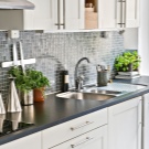 - Zubehör wird nach dem Stil der Küche ausgewählt,aber besonders in einem monochromen Interieur wird ein heller Akzent benötigt.