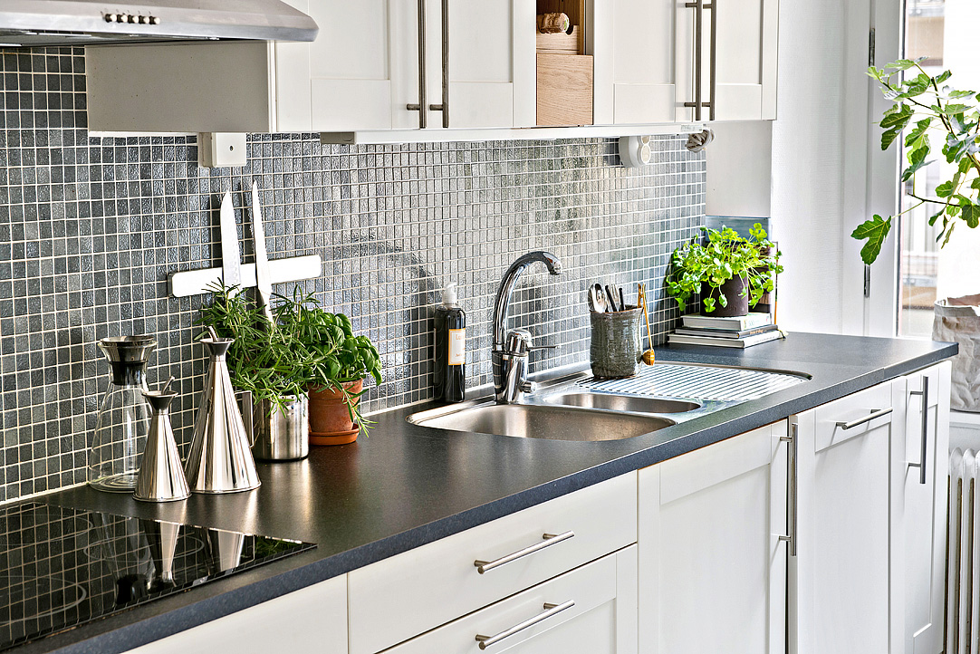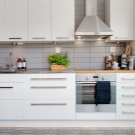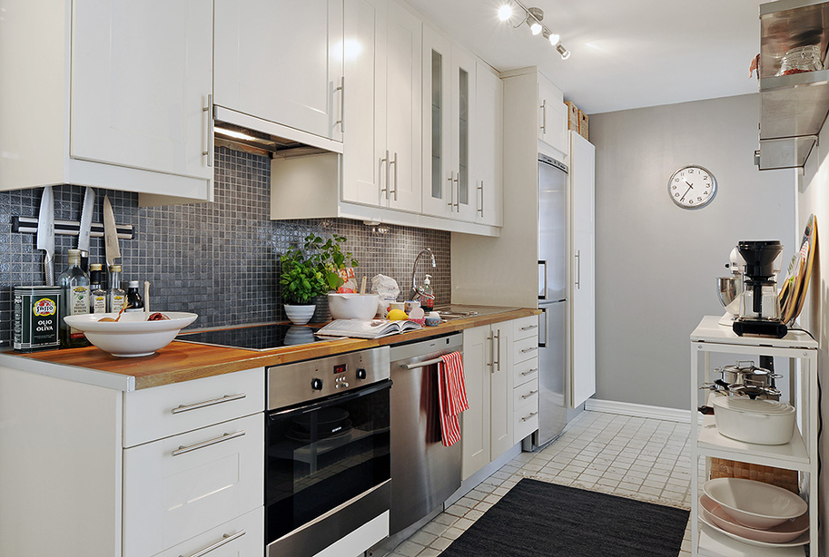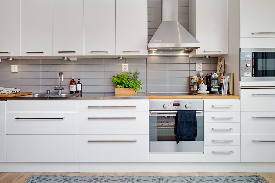 Wenn Sie in der Küche helle Farbschattierungen in Kombination mit grauen Wänden wählen, denken Sie daran, dass der Farbton von metallischem Grau die Intensität der Töne erhöhen kann. In dieser Kombination ist es besser, neutrale Grautöne zu verwenden, um den Farbrausch zu lindern.