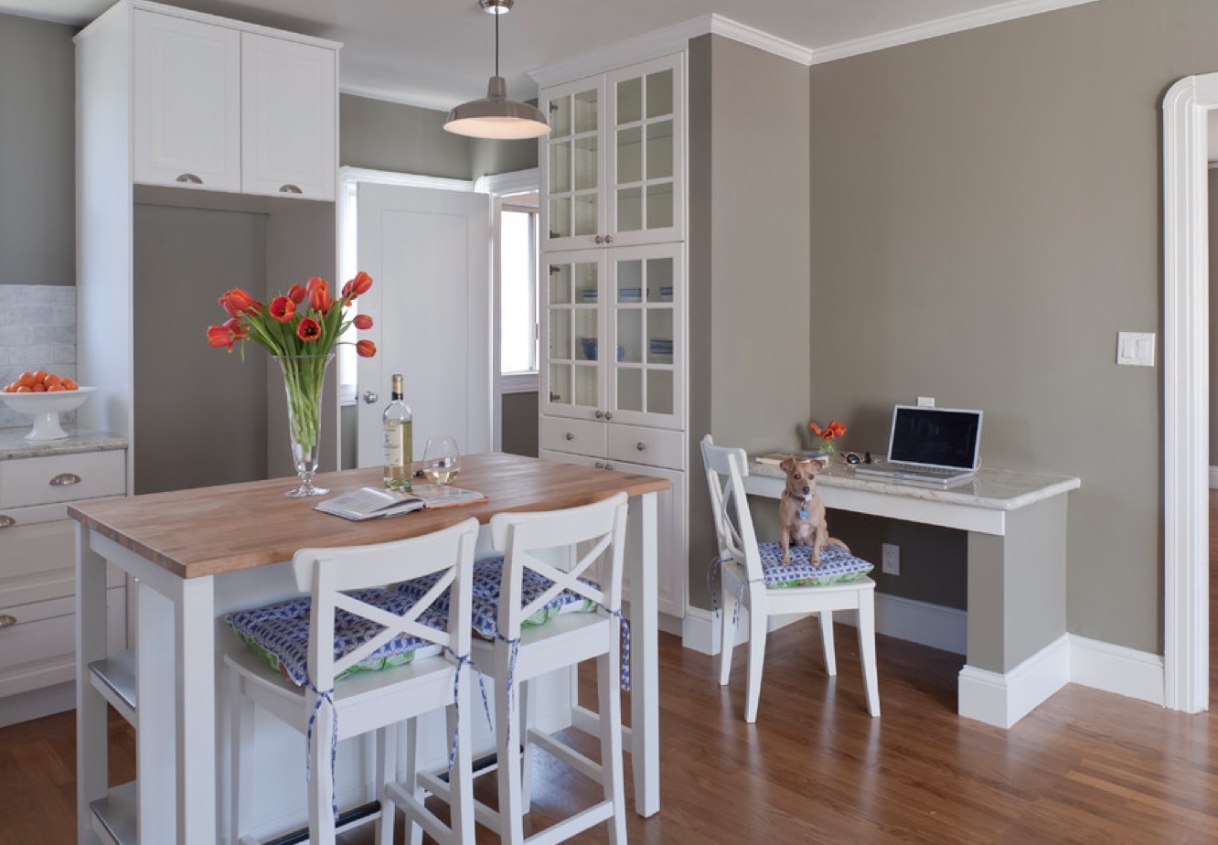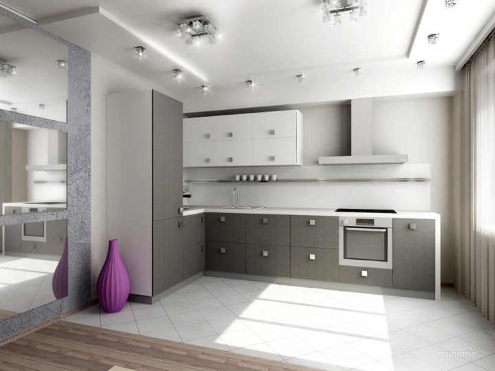 Weiß Die Kombination dieser Farben ist ein Klassiker. Graue Wände in einer weißen Küche sind für Loft- und Hi-Tech-Styles fast unverzichtbar. Auch verschiedene Weißschattierungen wie Elfenbein und andere harmonieren harmonisch mit Grau.Eine beige Küche Suite wird auch in einem Interieur mit grauen Wänden gut aussehen, besonders wenn Sie einen hellen Akzent hinzufügen.