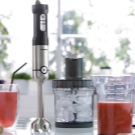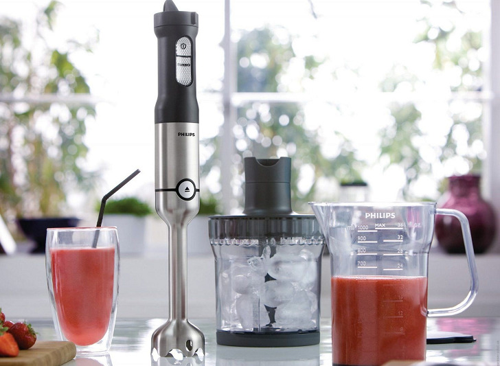 Netzbetriebenes Tauchmodell mit Eisspaltung und mechanischer Steuerung. Das Gerät ist mit einer speziellen Taste zur intuitiven Steuerung ausgestattet, mit der Sie die Rotationsgeschwindigkeit einstellen können.Die Leistung des Geräts beträgt 700 W, das Material des Unterwasserteils besteht aus Edelstahl.