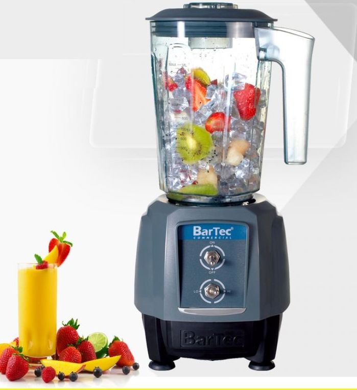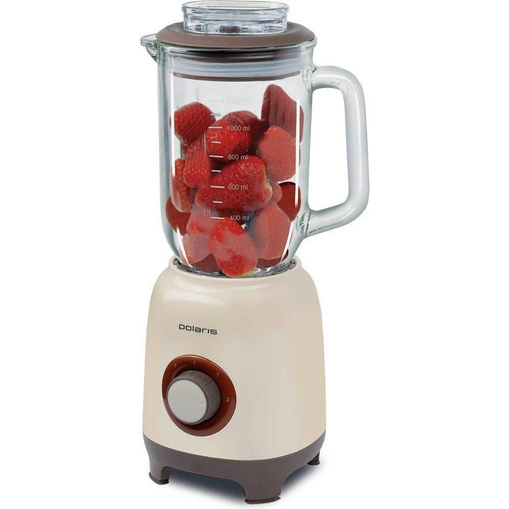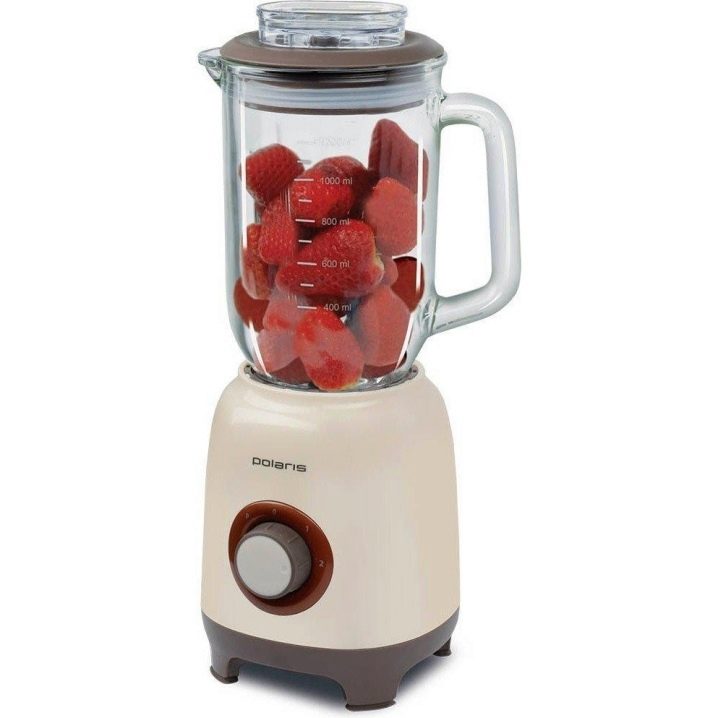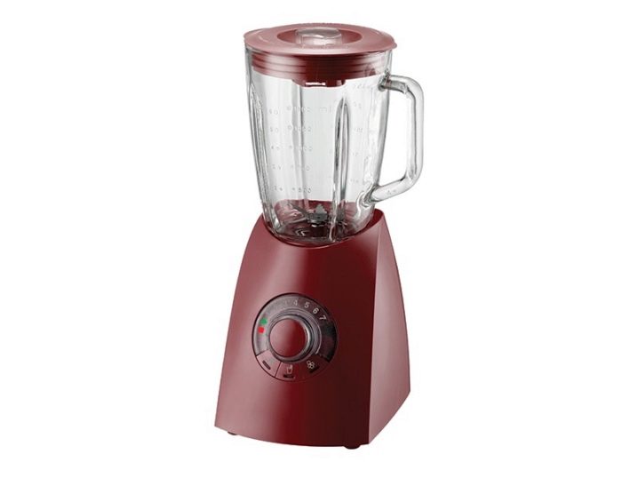 Standmixer zum Aufteilen von Eis mit einer Glasschale aus schlagfestem Glas mit einer Stärke von 6 mm und einer Leistung von 600W. Der Mixer ist mit einem ziemlich großen Krug mit einem Volumen von 1,2 Litern ausgestattet.