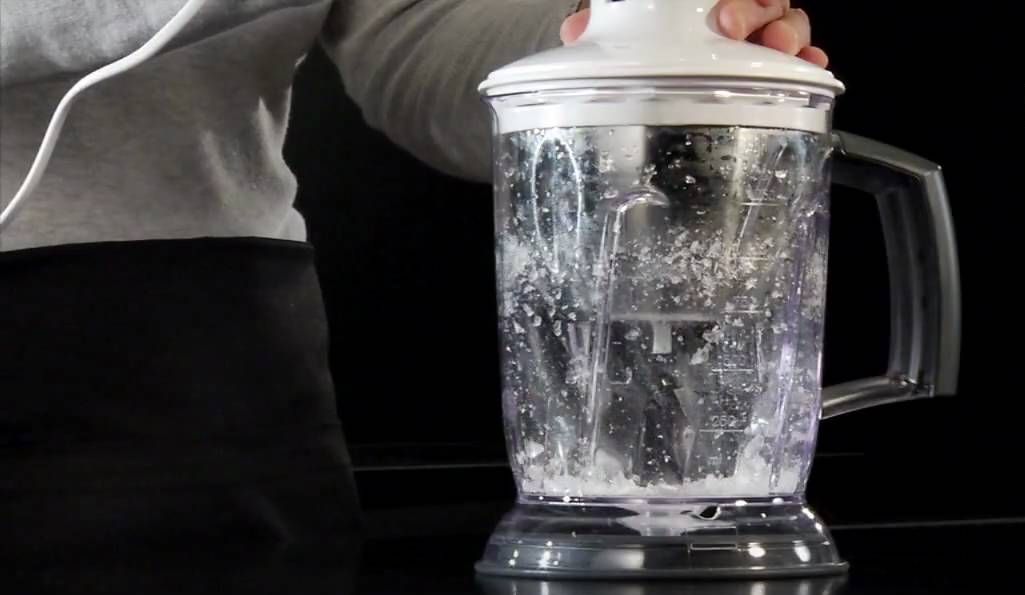 Stellen Sie sicher, dass der Mixer eine spezielle Eiskappe hat.