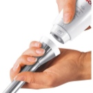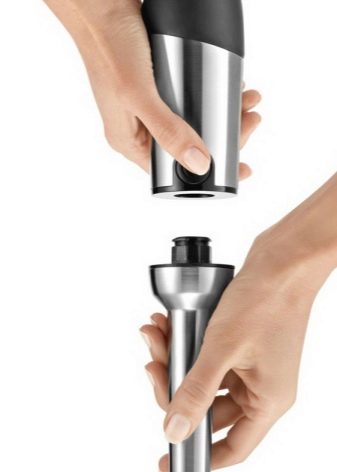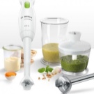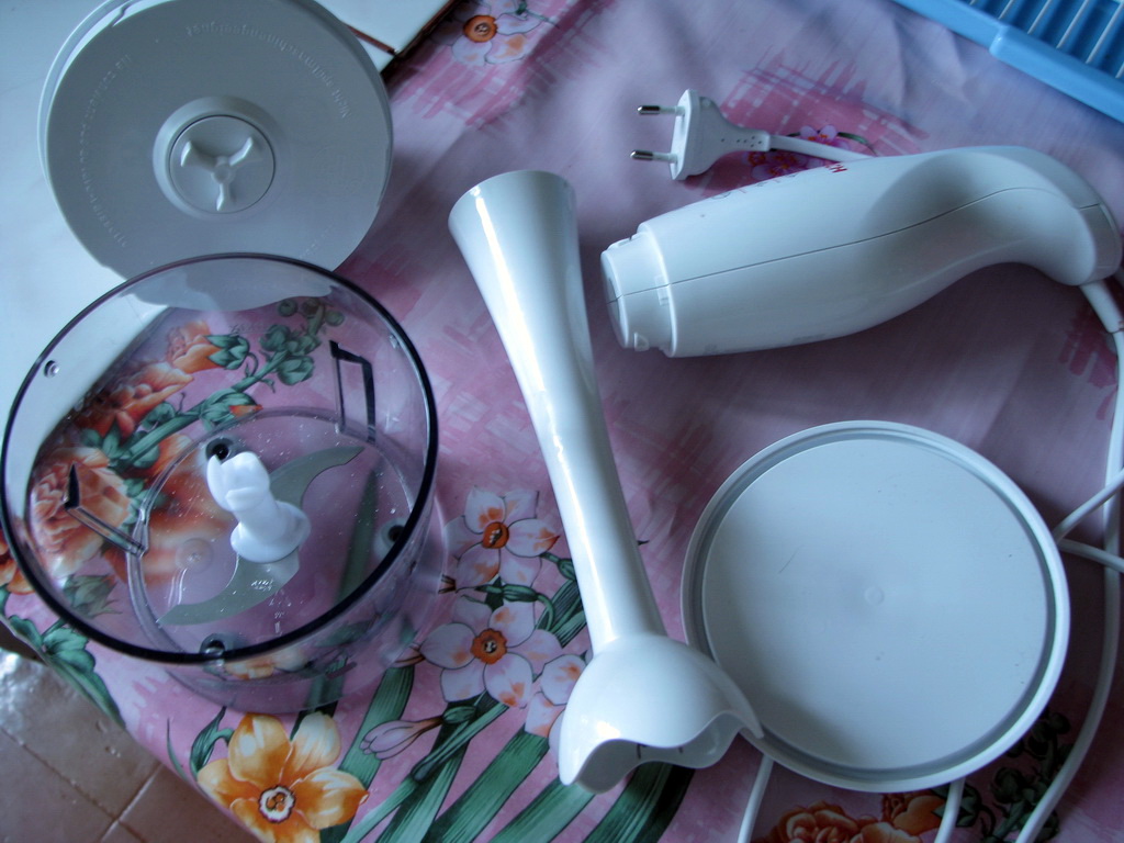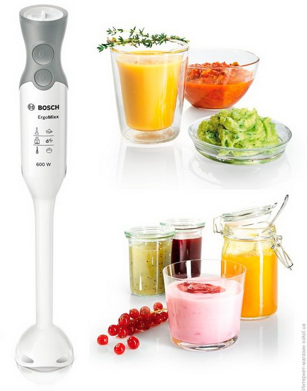 Das geringe Gewicht und die spezielle Form des Griffs erleichtern das Kochen, und der Tauchkörper ist so konstruiert, dass er während des Gebrauchs nicht verspritzen kann. Und vor allem, dass alle Teile des Mixers in der Spülmaschine gewaschen werden können. Aber hier ist das Gehäuse aus Kunststoff und das Modell entwickelt nicht zu hohe Geschwindigkeit.