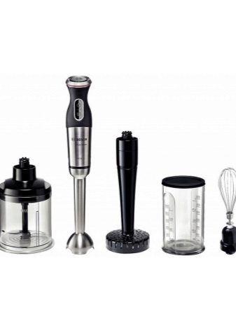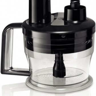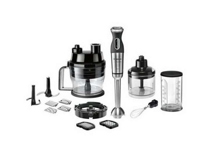 Dieses Modell ist viel teurer als das vorherige, aber viel leistungsfähiger und funktionaler. Außerdem besteht der Körper hier aus Edelstahl. Was die Geschwindigkeit betrifft, gibt es zwölf Optionen, je nachdem, was gemahlen werden soll. Das Kit ist eine Düse für einen Mixer, wie ein Schneebesen, Reibe, Chopper. Dieses Modell kommt mit einer Dicing-Funktion.