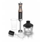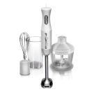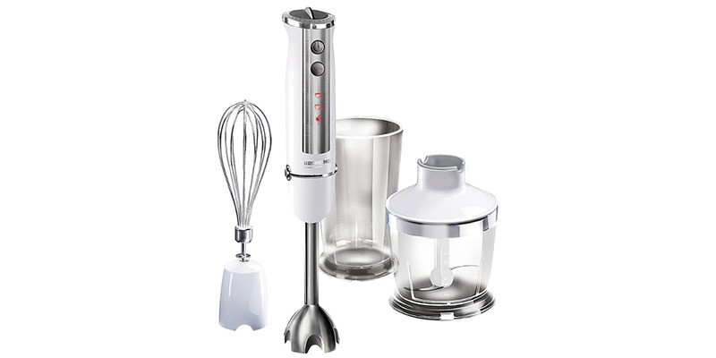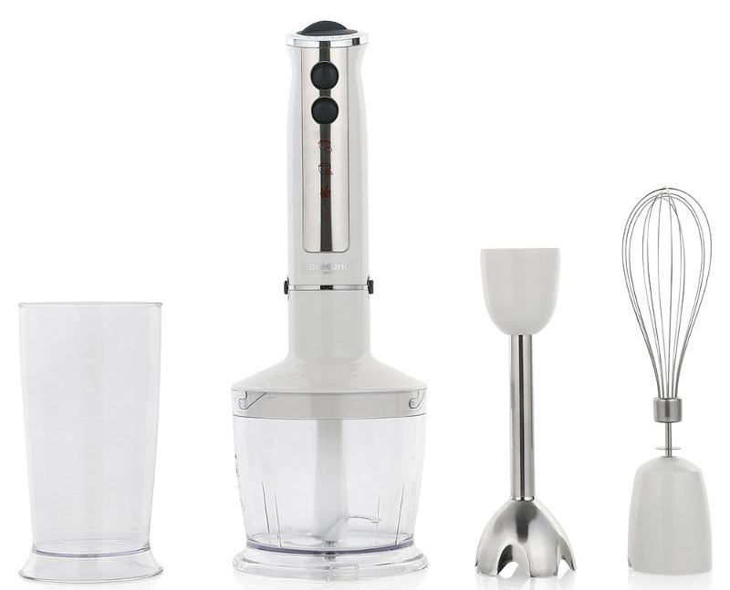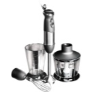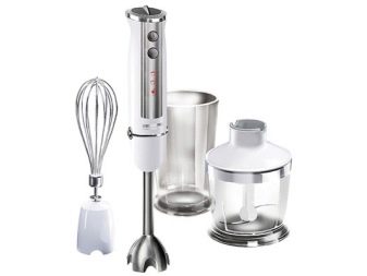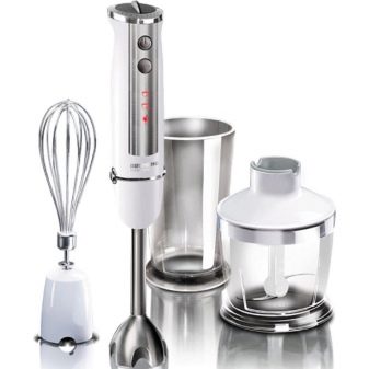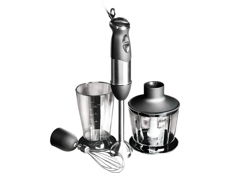 Eine solche Einheit ist einfach unersetzbar, wenn Lebensmittel in kleinen Mengen zerkleinert, Produkte gepeitscht und gemischt werden. Durch das Vorhandensein von zusätzlichem Zubehör kann dieser Mixer bei Bedarf in eine echte Küchenmaschine verwandelt werden. Hohe Funktionalität, niedriger Preis, lange Lebensdauer und einfache Bedienung sind die Hauptmerkmale dieses Gerätes.