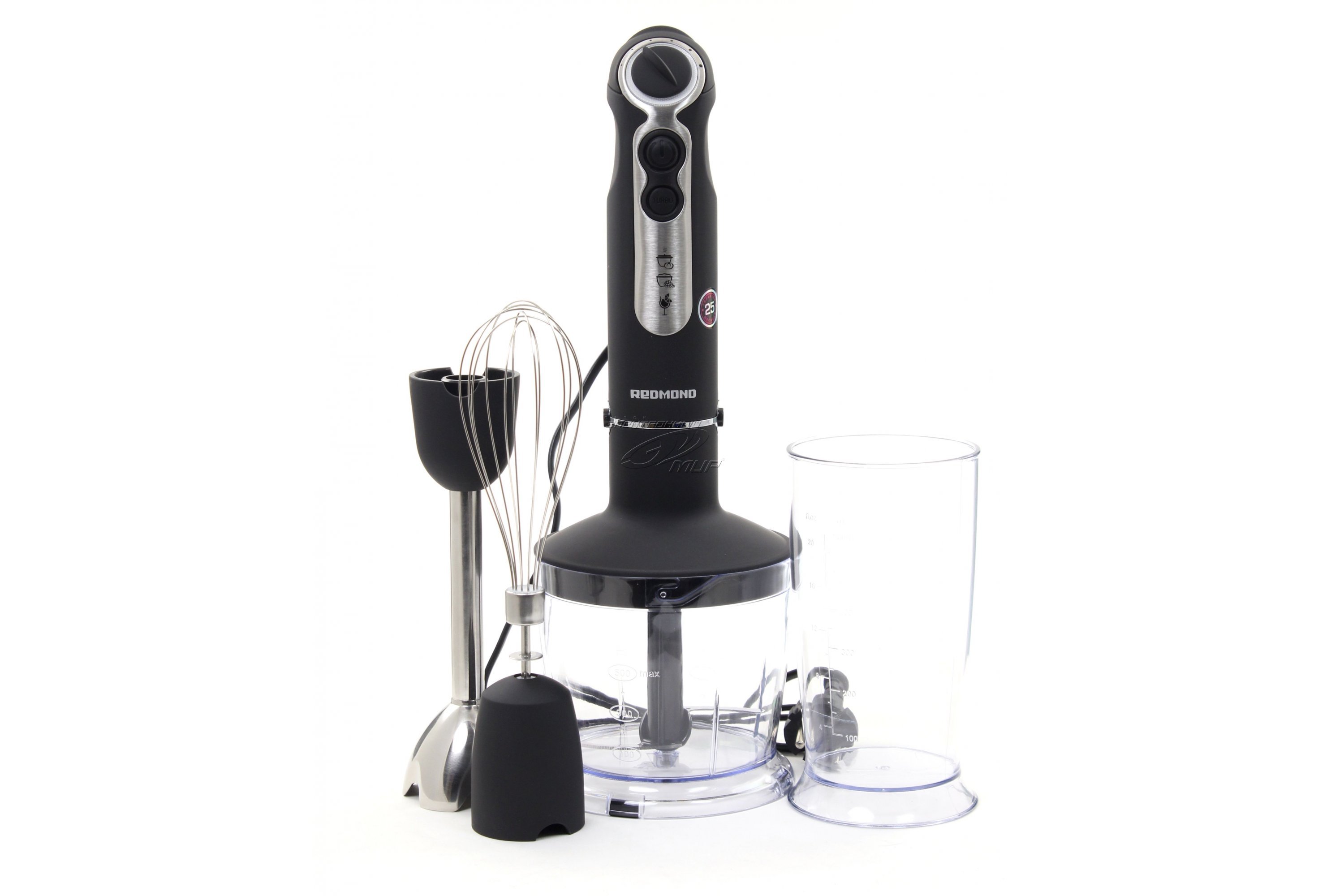 - Wenn stationäre Modelle von Redmond-Mischern verwendet werden, sollte daran erinnert werden, dass das nützliche Volumen der Schale fast 500 ml weniger als das nominale Volumen beträgt. Daher ist es nicht notwendig, die Schüssel bis zum Rand mit Produkten zu füllen, dies kann zu einem inkorrekten und ineffizienten Betrieb der Einheit führen.