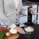 Für Fleisch müssen Sie einen Universalmischer vom stationären Typ nehmen. Ein solches Gerät hat in der Regel nur wenige Funktionen, führt sie aber qualitativ aus. Es eignet sich auch zum Zerkleinern von Eis, Nüssen und Käse. Es ist notwendig, auf das Vorhandensein der Funktion des Zerhackens von Fleisch, das Umwandeln von Produkten in Kartoffelpüree und das Zerkleinern zu achten. Die besten Modelle sind konzipiert für: Bork B800 (stationär), Element EW06PG und Braun 535 Soße.