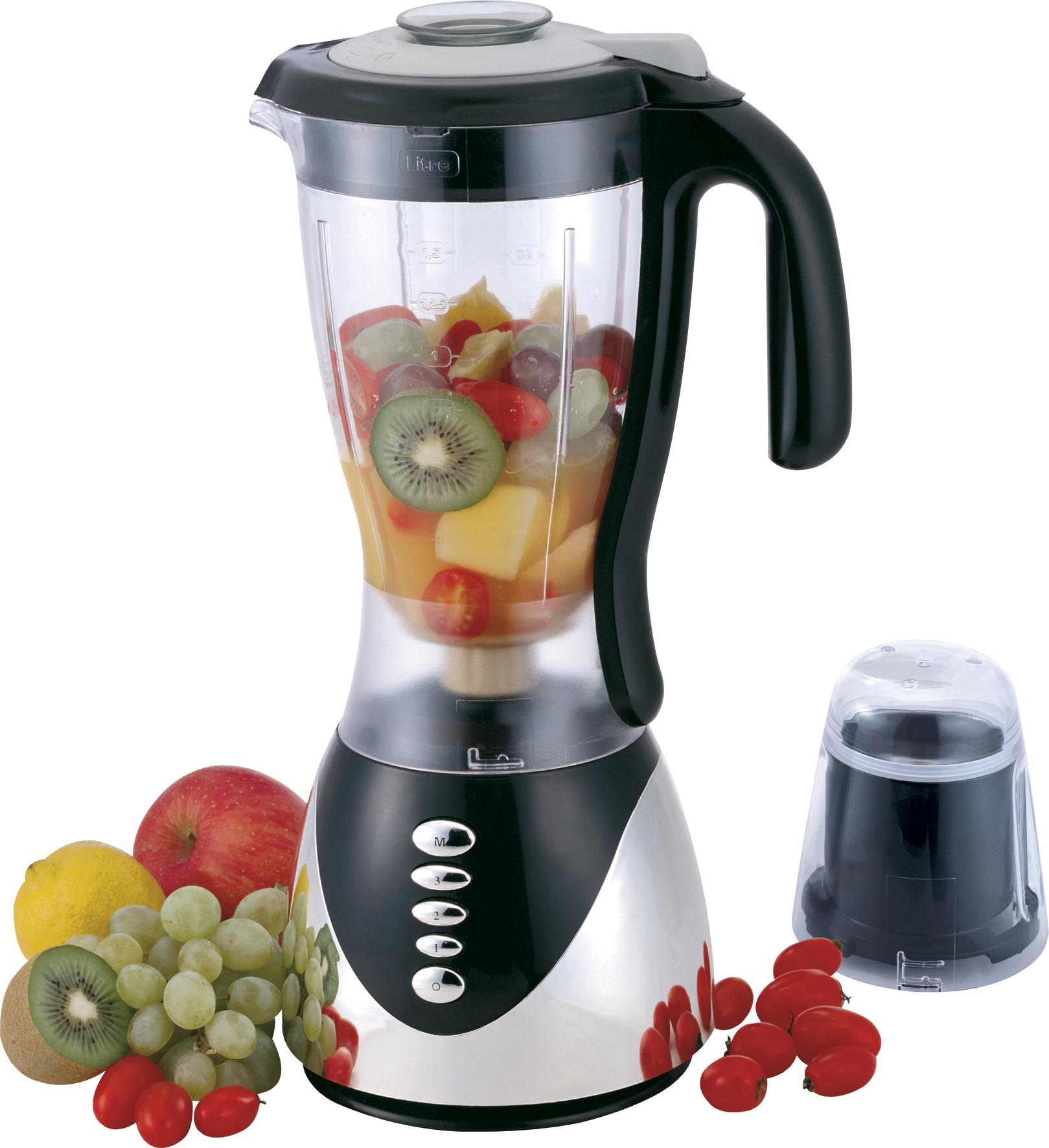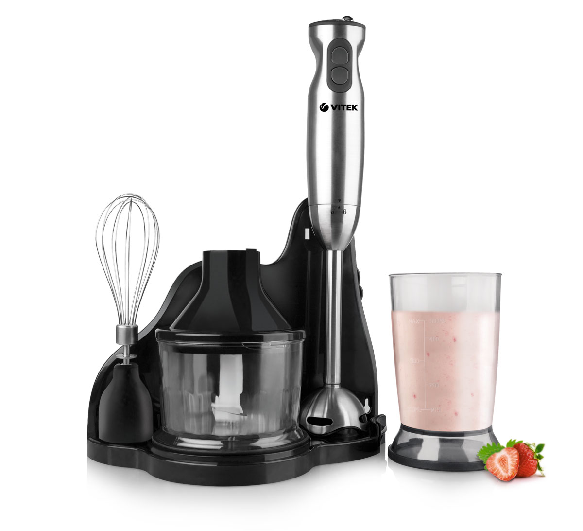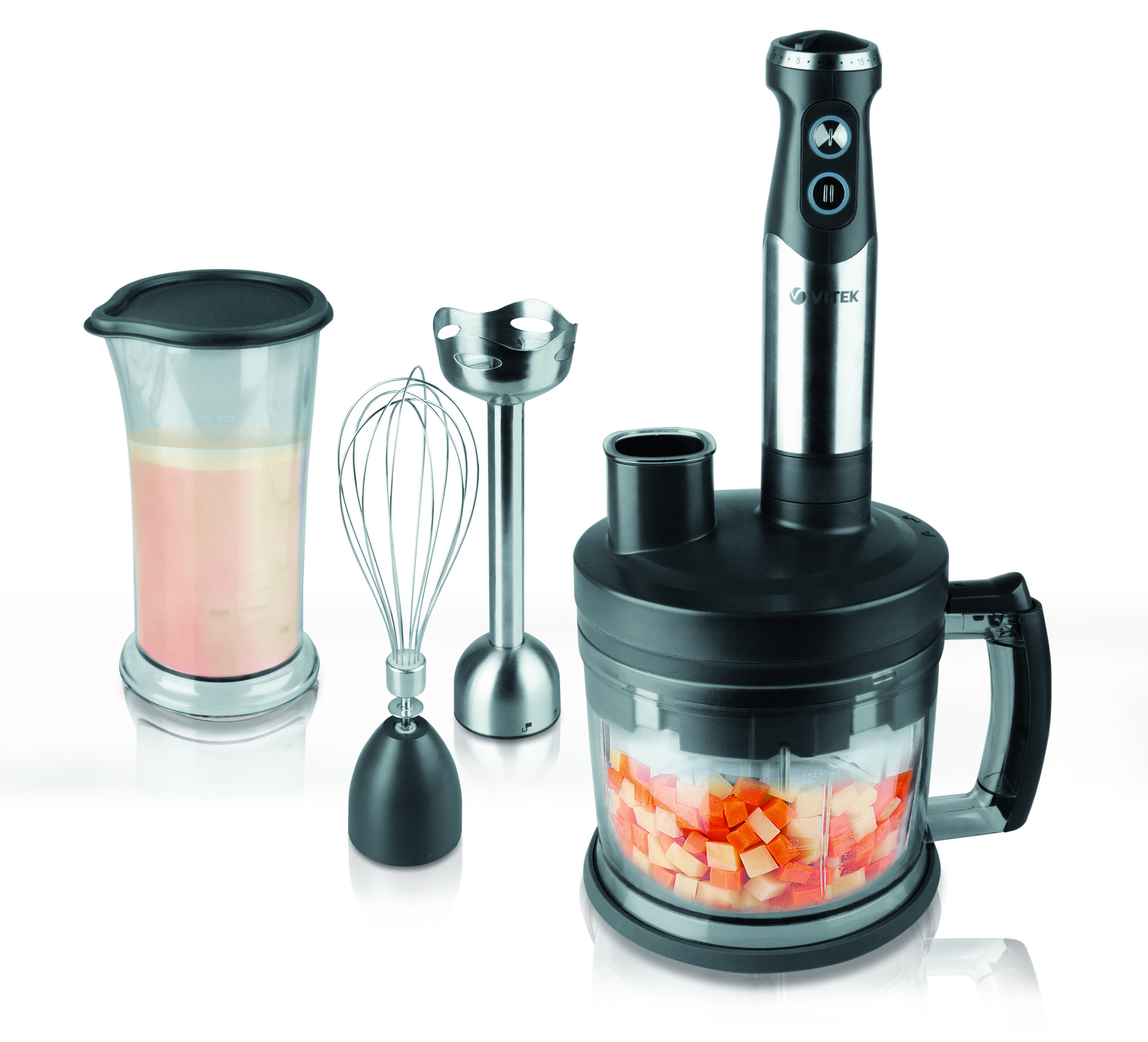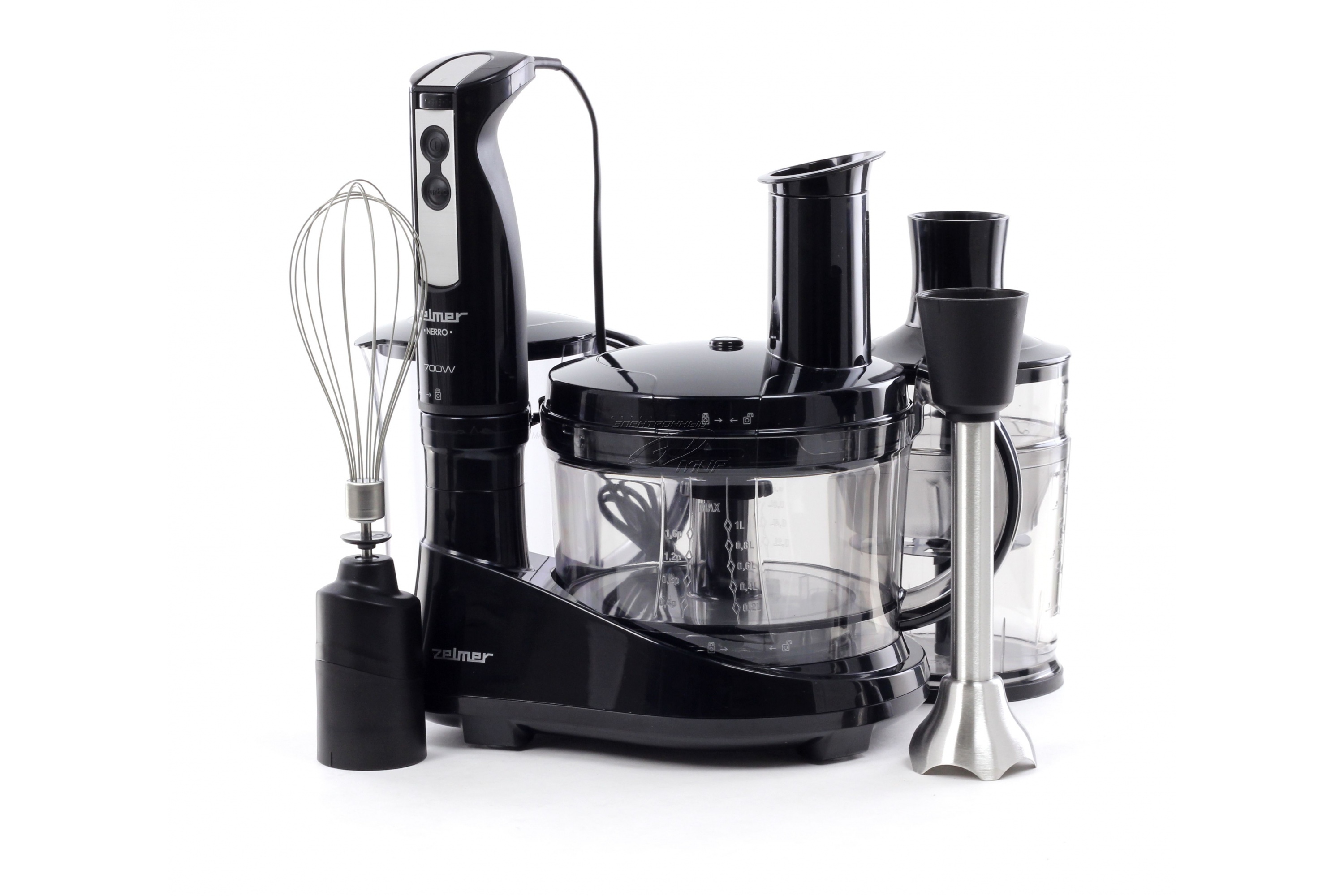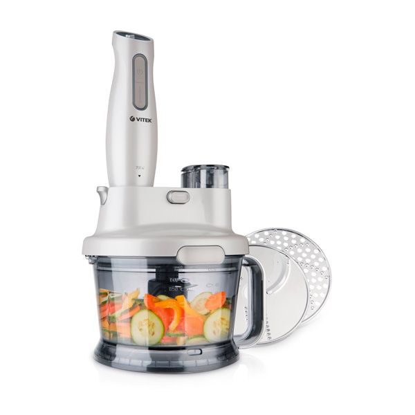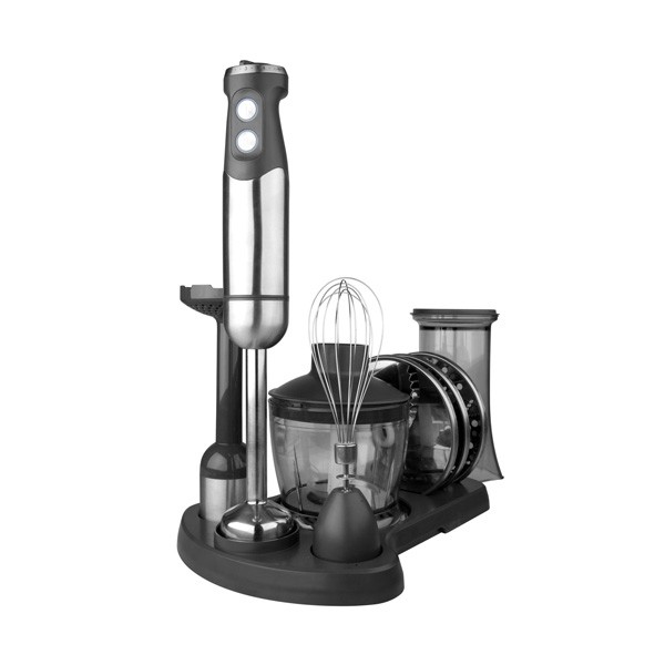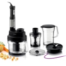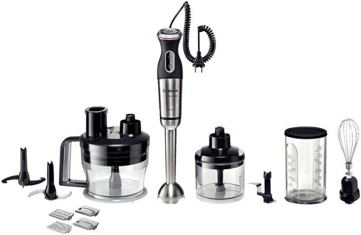 Geräte, die die Vereinigung der ersten beiden Geräte darstellen.In ihrem Arsenal haben sie eine große Anzahl von Düsen, ein Hacking Dickicht und einen Griff mit Klingen wie ein Tauchmechanismus. Manchmal werden Sets mit einem Glaskolben präsentiert, in dem sich eine Messskala befindet. Kombinierte Geräte werden 3 in 1 genannt, da sie einen Fleischwolf, einen Mixer und einen Shaker kombinieren können;