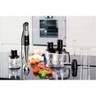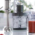 Eines der teuren Modelle, aber es hat eine riesige Anzahl von Düsen, Messern und Schlägern. Kann eine Küchenmaschine leicht ersetzen. Das Design ist modern - der Metallkörper und das interne Geräuschunterdrückungsgerät machen den Gebrauch eines Mixers so komfortabel und schnell wie möglich.