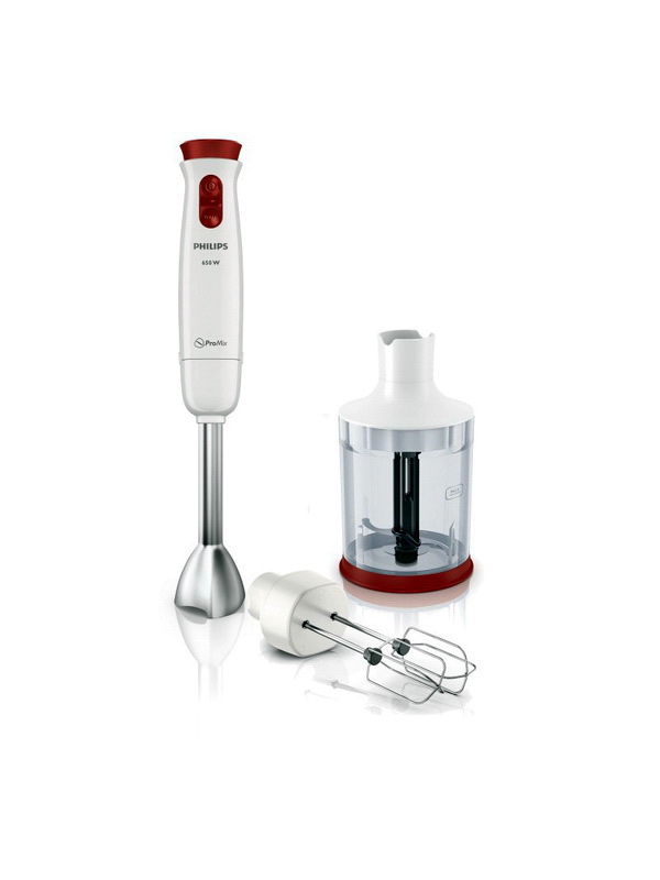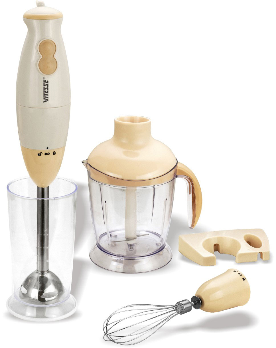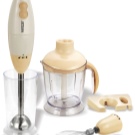 Diese Art von Mixer ist universell und hat eine geringe Leistung: von 300 W bis 1000 W. Sie können Sur-Püree machen, Babynahrung zubereiten, Sahne mischen und Cocktails mischen. Besser mit halbfesten Produkten. Einige Handheld-Modelle können auch Kräuter hacken. Zu den Nachteilen des Designs gehört die Verwendung am Gewicht, manchmal muss man auch den Finger auf den Schalter halten, damit das Gerät nicht aufhört zu arbeiten;
