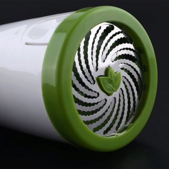 - Tragbarkeit - Einer der Hauptvorteile gegenüber anderen Küchengeräten ist die geringe Größe. Manuelle Modelle können einfach an der Wand aufgehängt werden, versteckt in einer Schublade oder einem Schrank. Ein Standard hat die Form eines Kruges und sieht wie eine Dekoration der Küche aus;