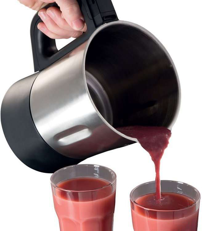 Für Babynahrung ist die perfekte Option. Dank der doppelten, können Sie oft mehrere Portionen gleichzeitig kochen. Die Hersteller haben das Modell mit einer Doppelboilerfunktion ausgestattet. Der Mixer eignet sich für die Zubereitung von Cocktails und Kartoffelpüree, hat eine hervorragende Leistung und ist leicht zu reinigen. Nachteile: teuer im Preis, laut und hat keine automatische Abschalttaste.