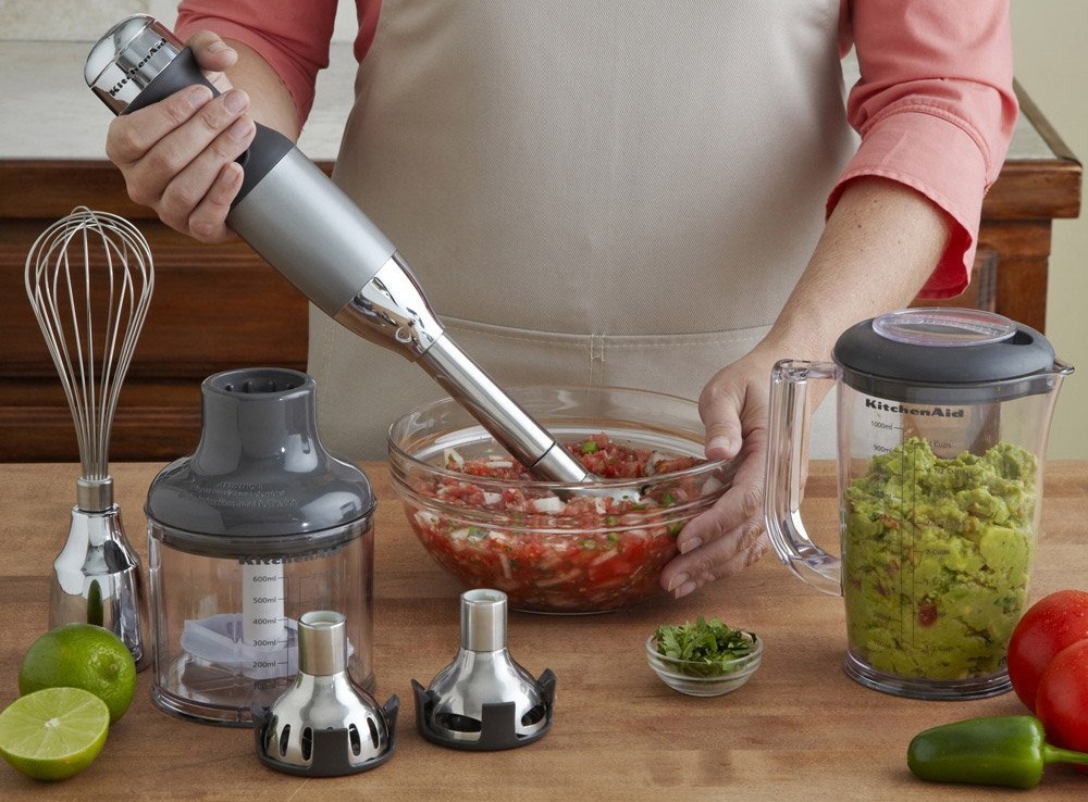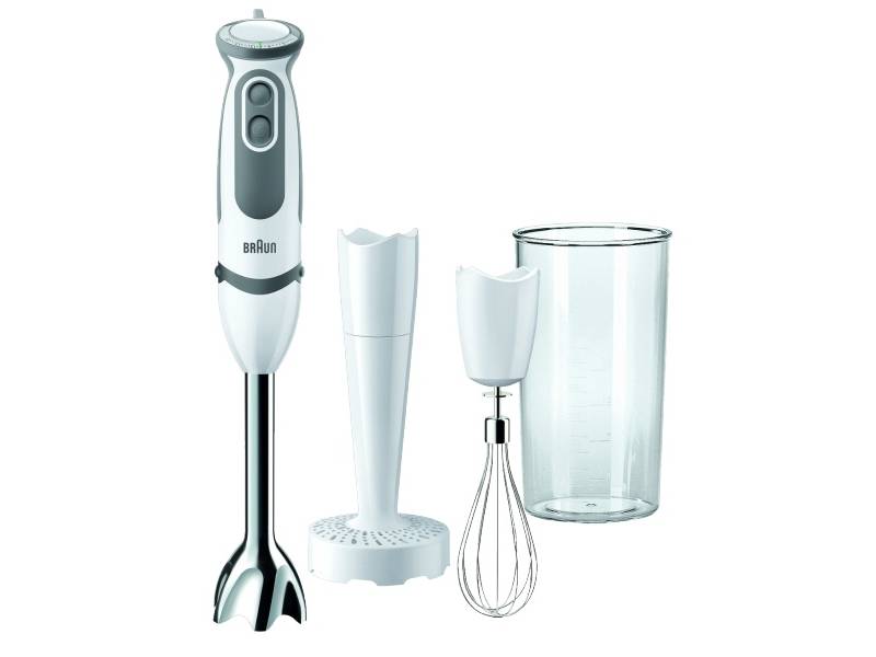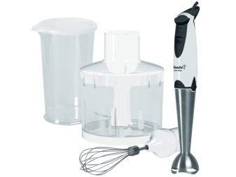 In einer breiten Palette von Modellen produziert Unternehmen Braun Blender 4200 MQ9037X (BK) hat sich zu einem der neuesten und bewährten neuen Produkte entwickelt. In seinem Set sieht man einen Schneebesen, ein Standardbein, eine Düse für Kartoffelbrei, einen Mini-Chopper und eine Messschale. Eine Leistung von 1000 Watt sorgt für schnelles Mischen.