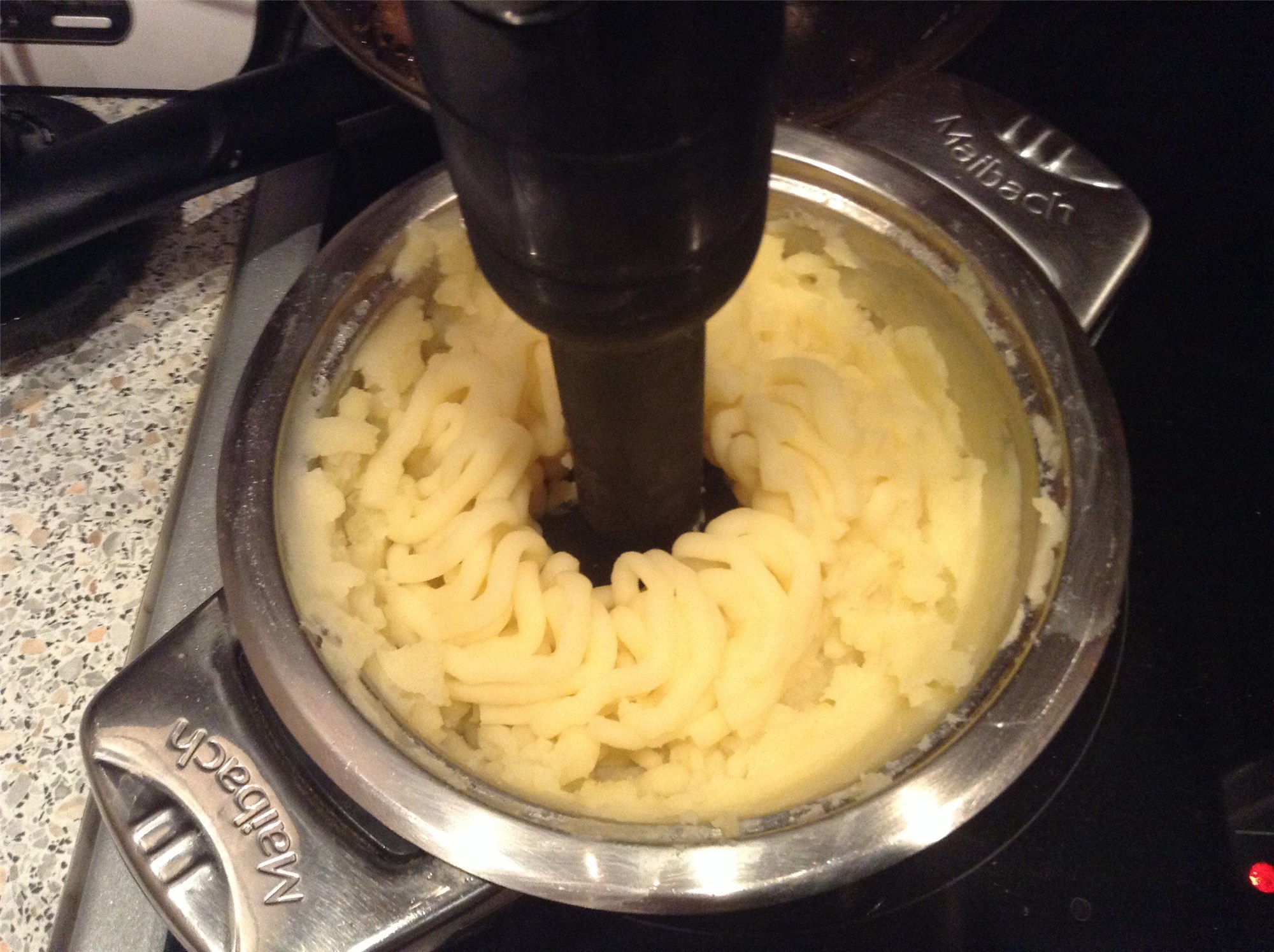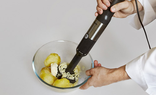 Was stimmt nicht mit Kartoffelbrei, der mit einem Mixer zubereitet wurde? Das unglückliche Ergebnis ist zunehmend mit längerem Mischen verbunden. Die Düse aktualisiert dank der Löcher im Gehäuse ständig die Masse, ohne sie zu verzögern oder unnötigem Schleifen zu unterziehen.