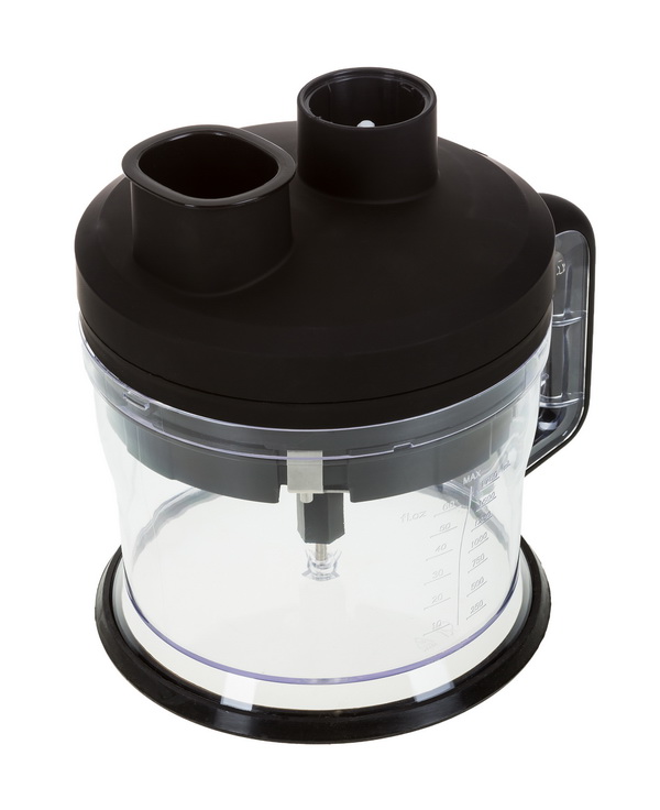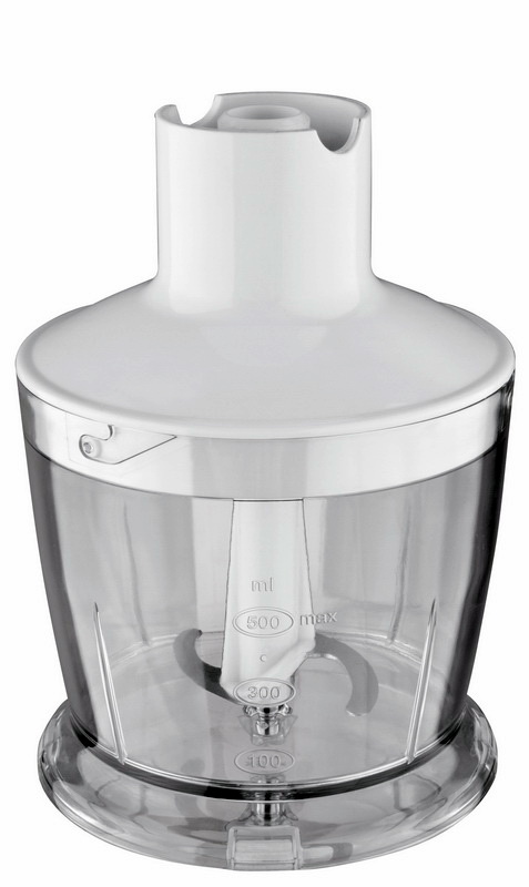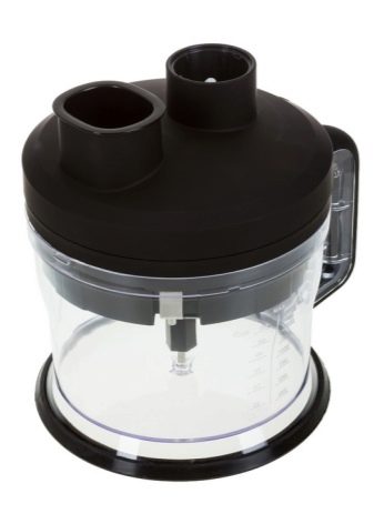 Mixer werden mit einem Glas mit einer Kapazität von 600 ml abgeschlossen. Im Lieferumfang enthalten ist ein Hacker bestehend aus einer 500 oder 600 ml Schüssel, einem Deckelantrieb, einem Hackmesser.