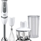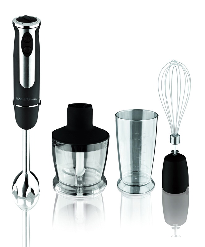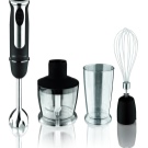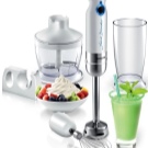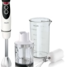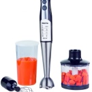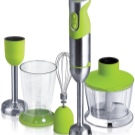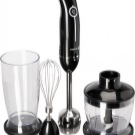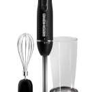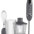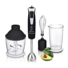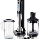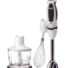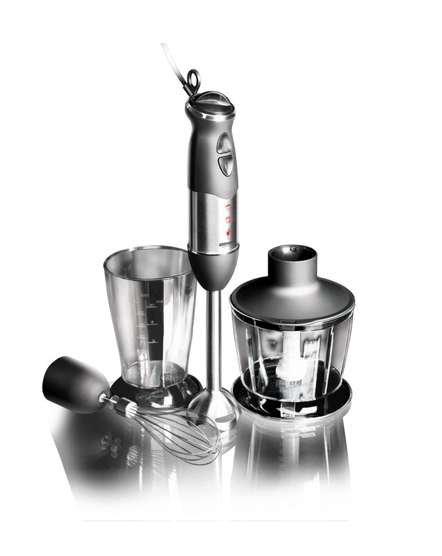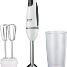 Der einfach zu bedienende Mixer-Homogenisator hat bis zu 5 Geschwindigkeiten und sorgt für einen leisen, effizienten Betrieb. Für jede Operation können Sie die Düsen wechseln: hacken, hacken, mit einer sternförmigen Klinge hacken und Cremesuppen, Soßen mit einer S-förmigen Klinge kochen. Verwandeln Sie die Produkte in eine cremige Mischung, schlagen Sie die Milch, bereiten Sie den Teig dank der Klinge mit den Klingen zu und der Schneebesen wird benötigt, wenn Sie ein Fan von hausgemachter Mayonnaise, Mousses, Desserts sind.