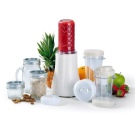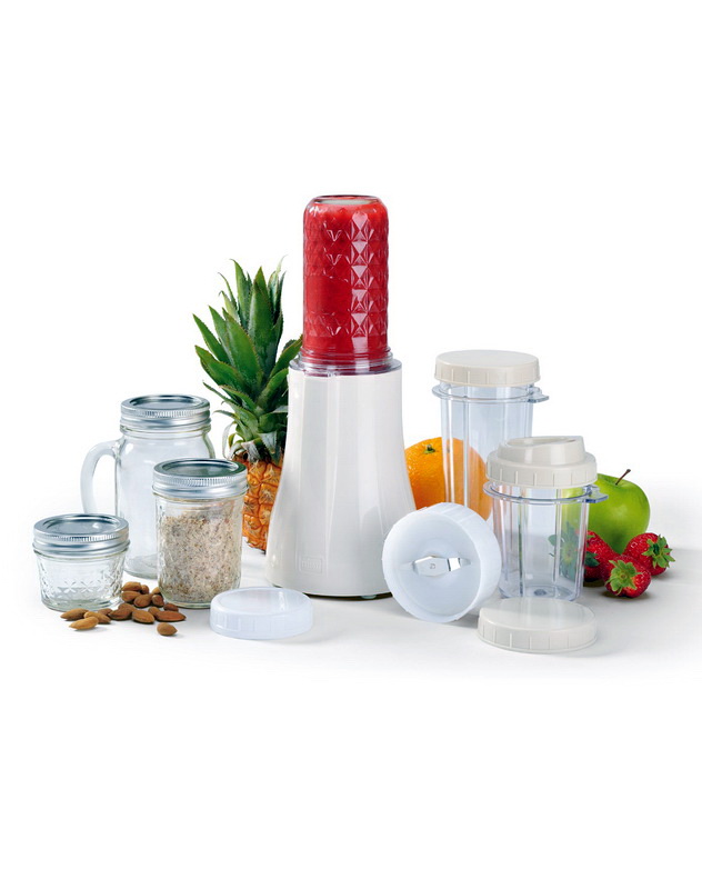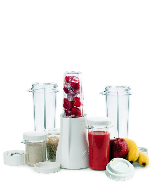 Das Gerät kann sicher das Know-how des Jahrhunderts genannt werden, denn es gehört zur Kategorie der 3-in-1-Geräte, es ist eine Art von Ihrem persönlichen Mini-Prozessor, Mixer und Entsafter (oder Shaker). Mit ihm ist es so einfach, Nüsse zu hacken, Protein- und Protein-Shakes zu kreieren, Teig zu mischen, Desserts und Cremes für sie zu schreiben.