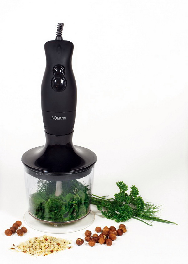 Sie können auch auf den kompakten Chopper achten. Es besteht aus einer Schüssel, scharfen Messern. Der Hauptunterschied zwischen einem solchen Gerät und einem Mixer ist das effizientere Mahlen von Lebensmitteln. Sie haben nur einen Knopf, mit dem Sie die Konsistenz von Schleifen, Hacken, Schreddern etc. einstellen können.