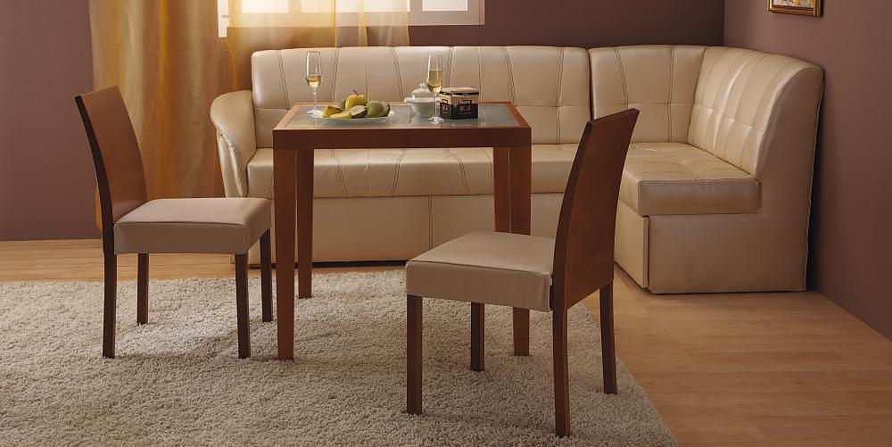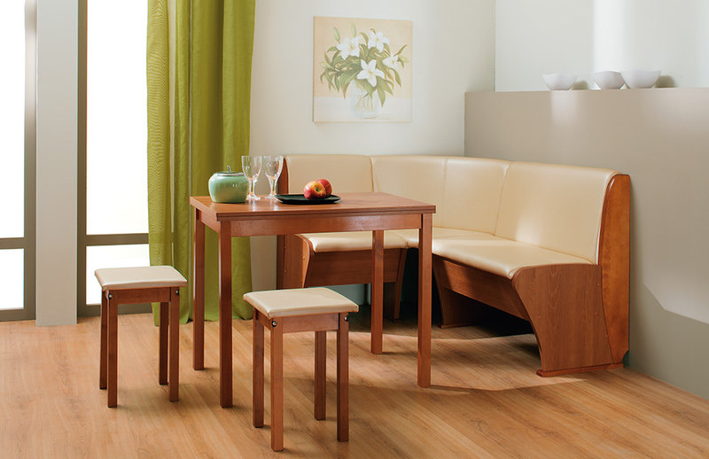 - Modell Troy - eine kleine gemütliche Ecke aus Spanplatte und Kunstleder. Unterscheidet sich niedrigen Preis und passt, sogar die kleinste Küche.