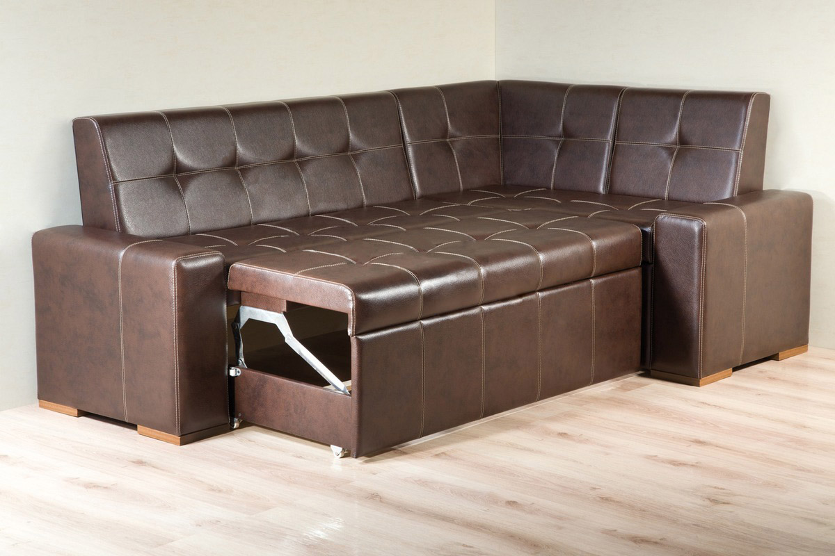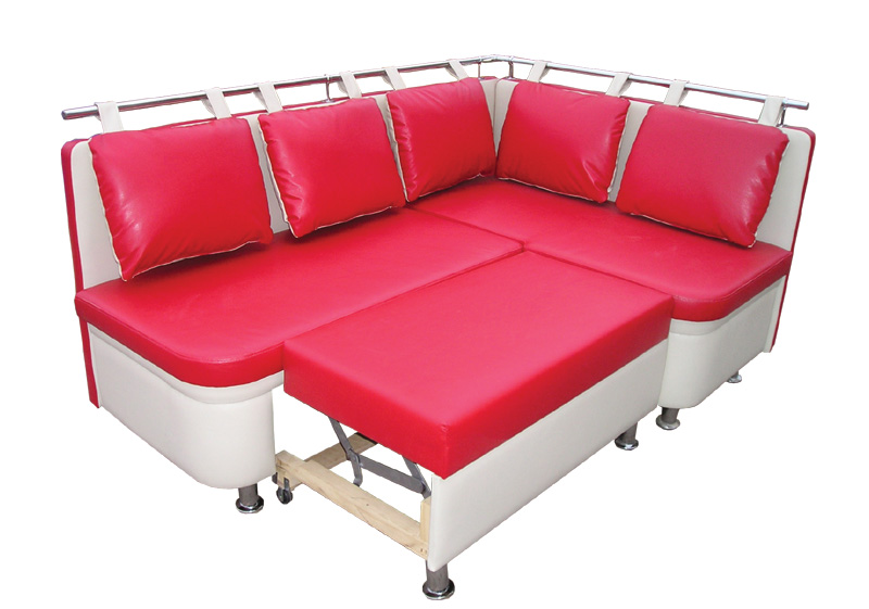 - Entfaltung. In der Regel sind dies Eckküchensofas und sie gewinnen gerade an Popularität.Zusatzbett ist praktisch für Überraschungsgäste. Es ist jedoch nicht ratsam, regelmäßig auf einem solchen Sofa zu schlafen, da es weich ist und Sie oder Ihre Lieben Rückenprobleme haben können.
