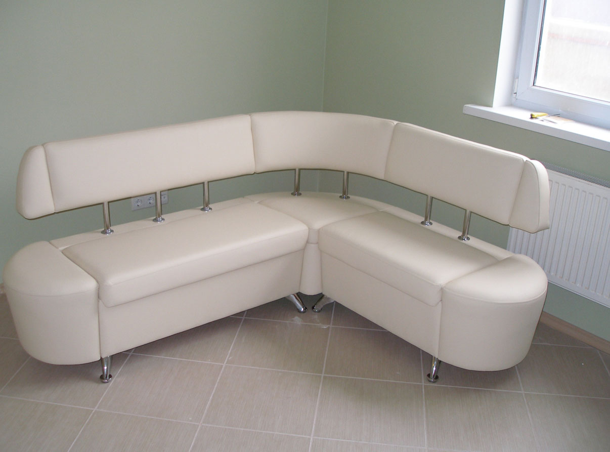 Da es jetzt immer mehr verschiedene Farben gibt, können Sie, wenn Sie möchten, wählen, was Sie wollen. Mit einem solchen Sofa können Sie sich keine Sorgen um Schmutz machen, weil es leicht zu reinigen ist, also hängt alles vom Design Ihrer Küche ab.