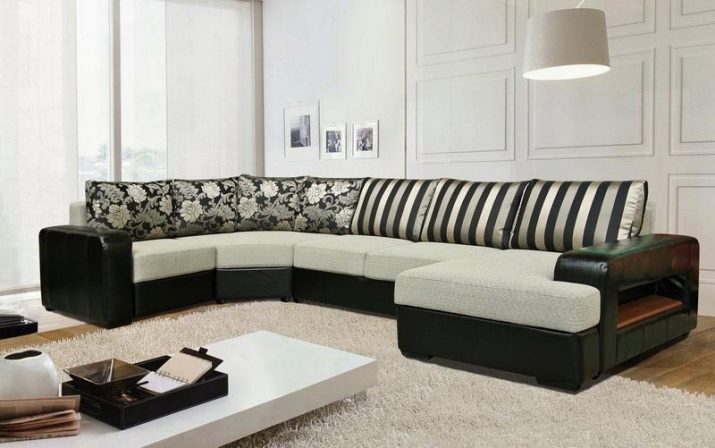 - Ecksofa Salvador schwarz und weiß - ein geräumiges Möbelstück, das äußeren Komfort anzieht. Sieht sehr stilvoll und schön aus, strenge schwarze und weiße Farben geben ihm Effizienz.