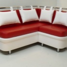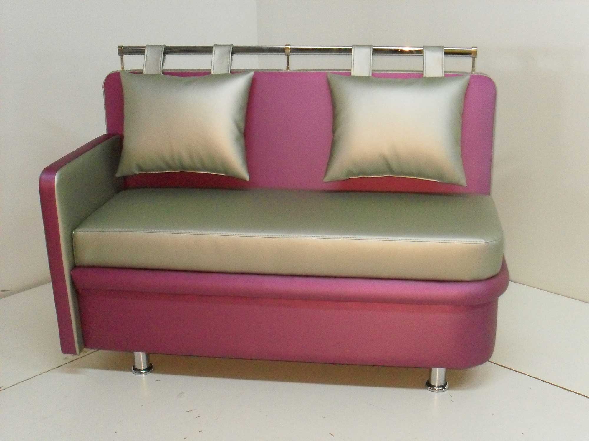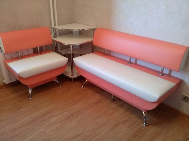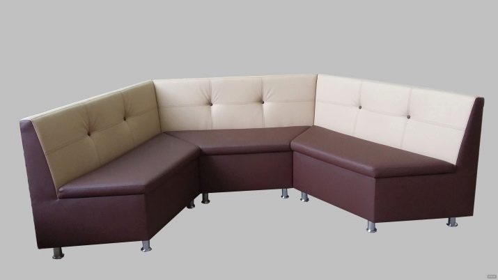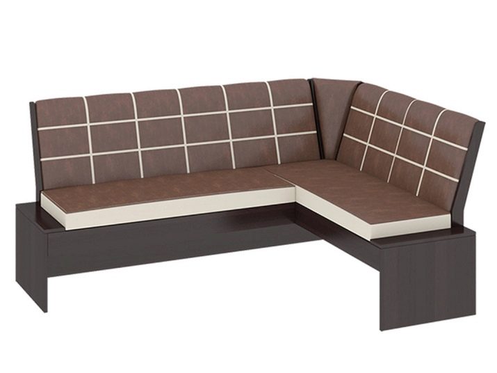 Aufgrund des Budget-Segments kommen Geräumigkeit und teure Polstermaterialien nicht in Frage, aber diese Form hat sich leicht für andere Arten von Sofas durchgesetzt. Zum Beispiel kann die Basis eine Bank sein, die aus mehreren Stäben zusammengesetzt ist, aber gleichzeitig konvergieren sie in einer Ecke und bilden ein erkennbares Aussehen.