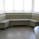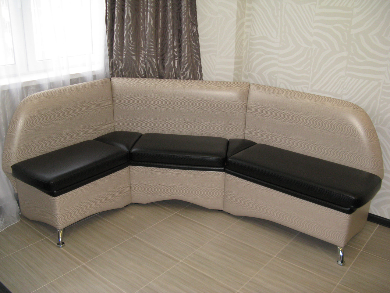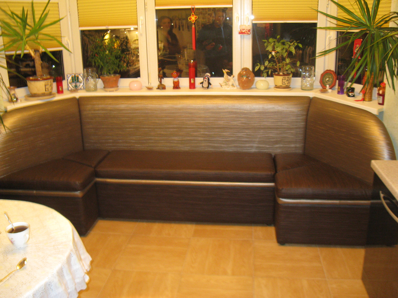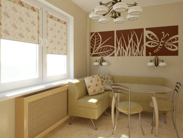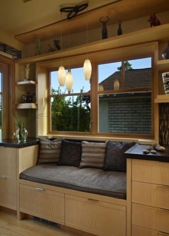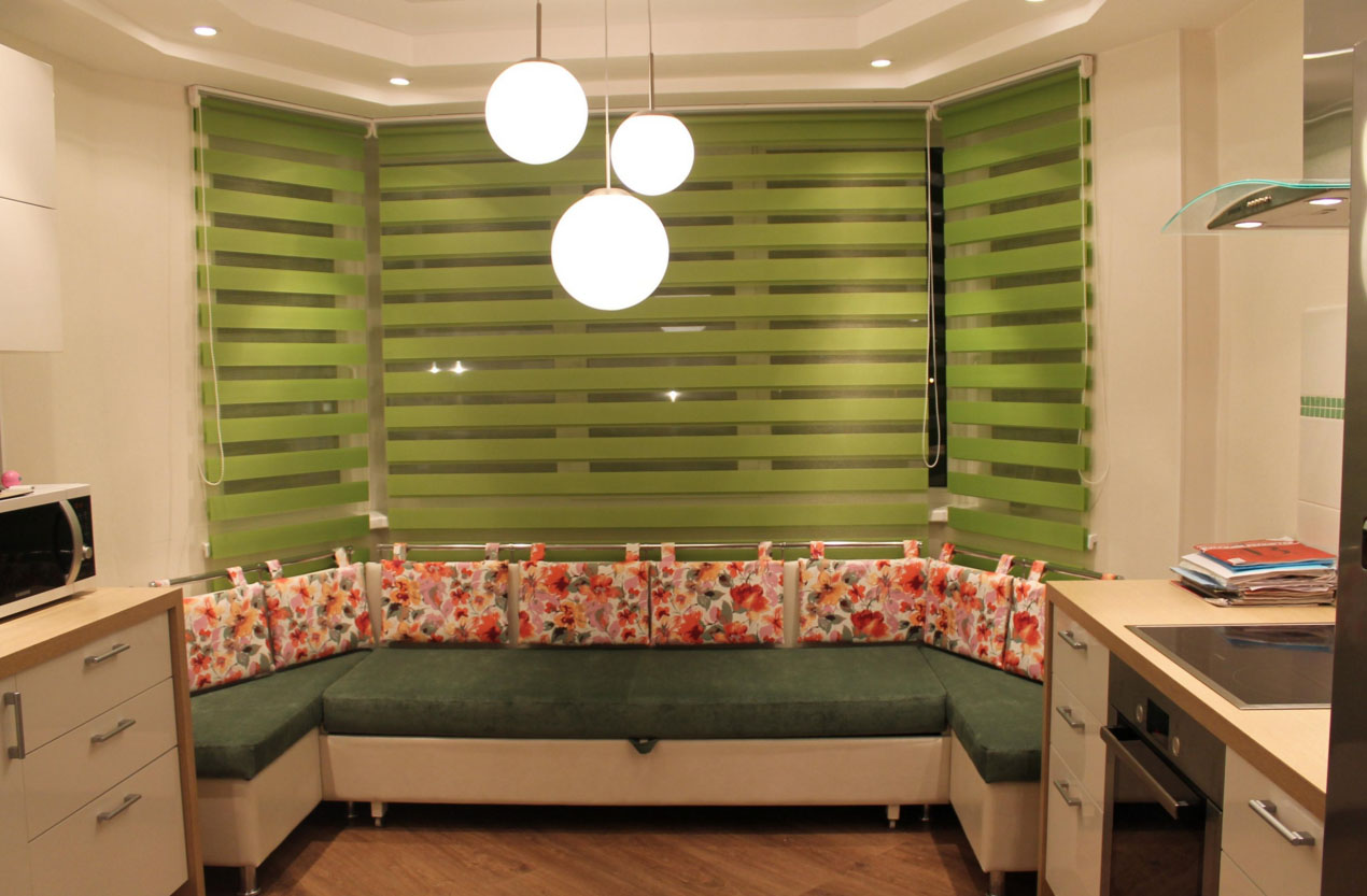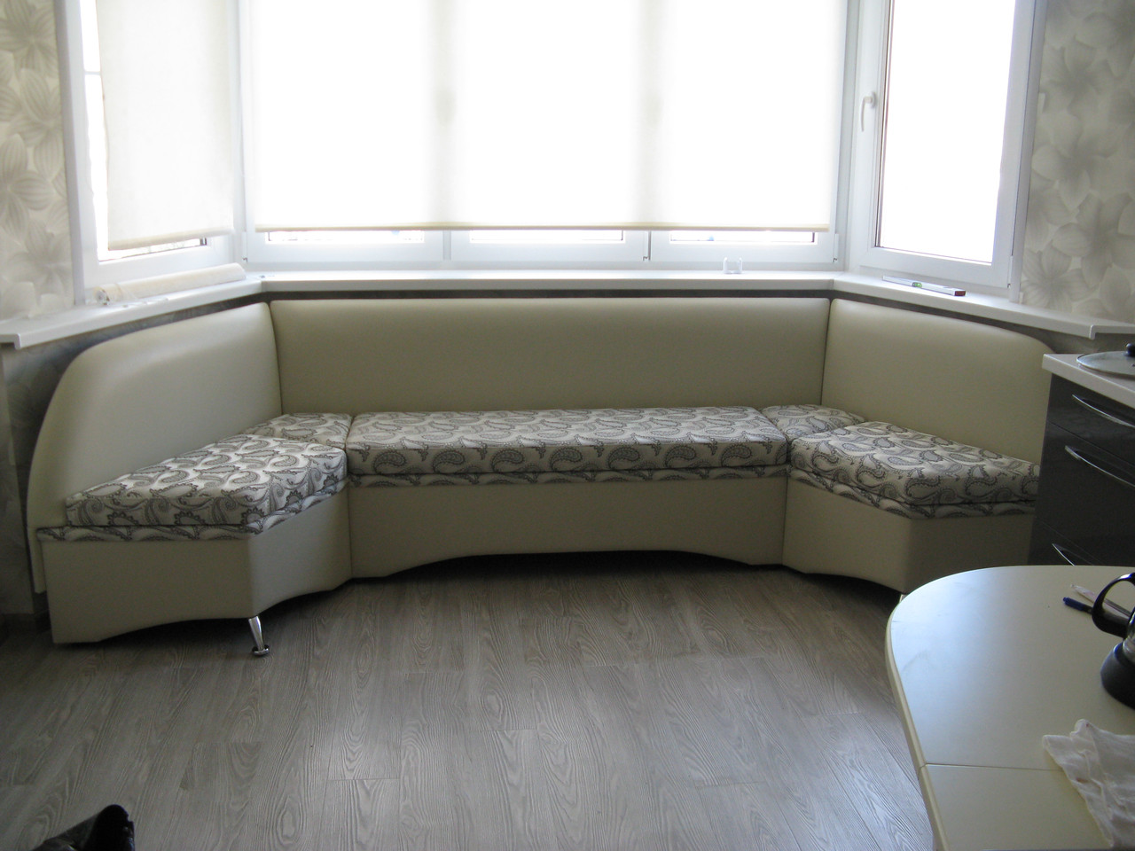 Wenn Sie das Glück haben, eine spezielle Nische in der Küche zu haben, angefangen von der Fensterbank aus, dann werden die erker-Sofas, die einem erweiterten Polygon ähneln, eine ideale Innendekoration sein. Dies kann eine Klappoption oder eine klassische Zone für 4-5 Personen sein, abhängig von der Anzahl der Fenster.