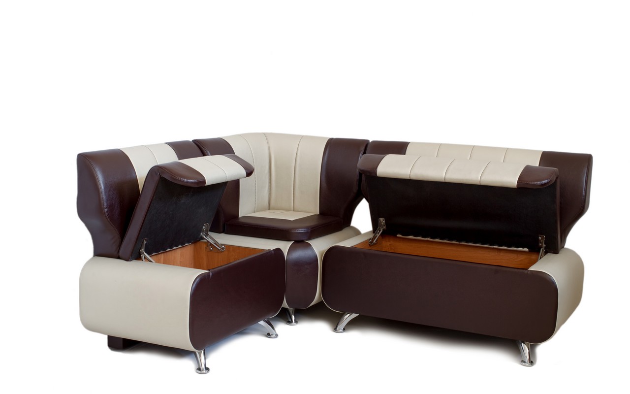 Heute sind Sofas für die Küche mit Aufbewahrungsbox nicht nur ein stilvolles Element des Interieurs, sondern auch eine praktische Lösung, besonders für diejenigen, die eine kleine Wohnung haben, und die Installation von massiven Schränken führt unvermeidlich zu einer Anhäufung. Um den Entladungsraum zu maximieren, wählen immer mehr Besitzer kleine Sofas mit einer großen Kapazität.