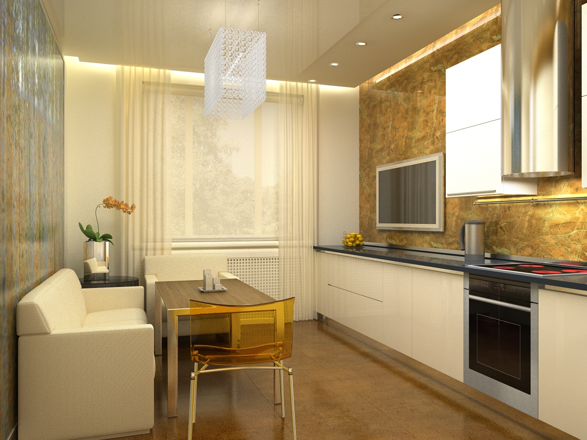 Der unbestrittene Führer in den meisten russischen Wohnungen des Typs Chruschtschow und "Stalin" mit Frankfurter Küche, wo das Problem des freien Raums das Hauptproblem ist. Die Richtung des Winkels kann beliebig sein, aber in fast allen Modellen ist die Schachtel unter einem dreieckigen Deckel, der die beiden Hälften trennt, "versteckt".