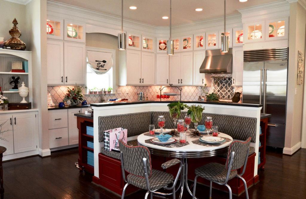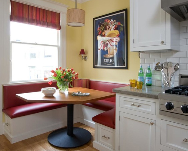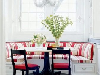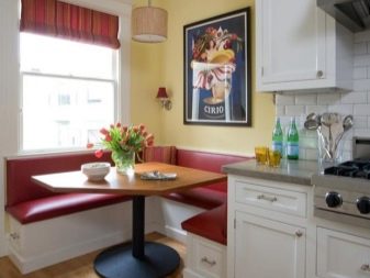 Die Sofaecke kann sogar in der kleinsten Küche sein. Die Hauptsache ist, die richtige Größe, Farbe und Form zu wählen. Wenn Sie all diese Kriterien berücksichtigen, wird Ihre Küche warm, gemütlich und jeden Tag wird angenehm für das Auge sein.