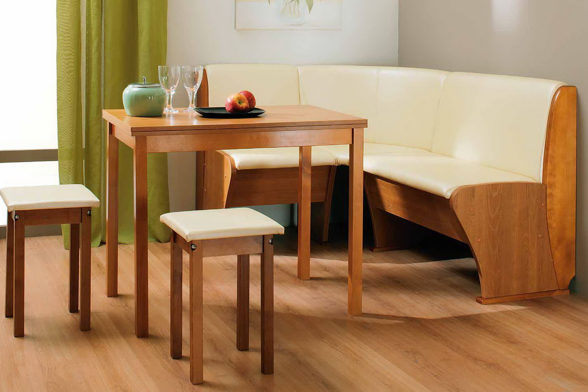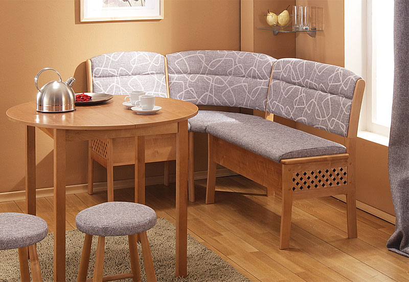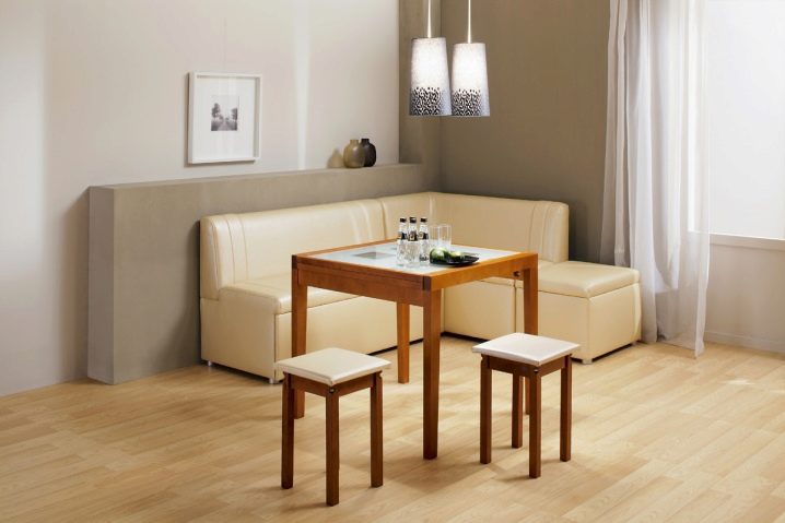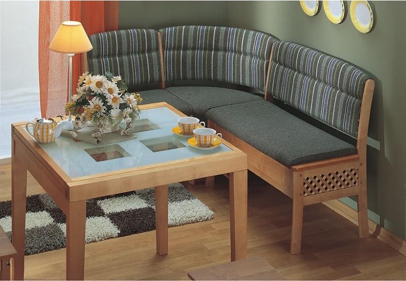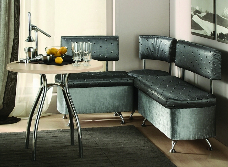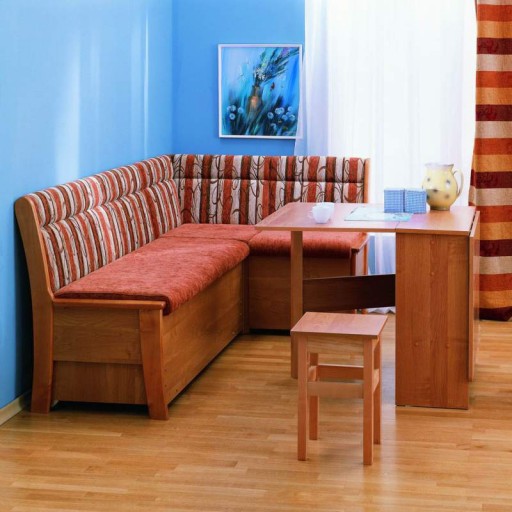 - Kompaktheit des Produkts. Sofas dieser Form sind sehr selten insgesamt, das ist ein zusätzliches Plus, wenn Sie eine kleine Küchenzeile haben.